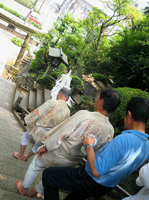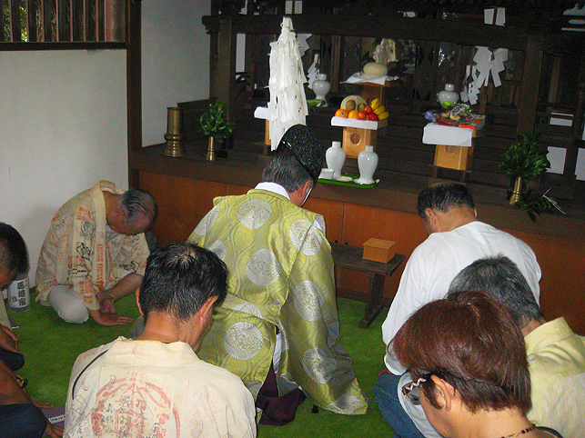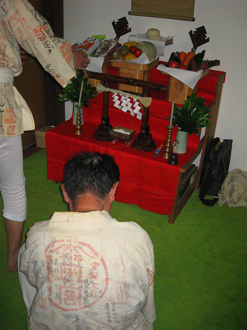 お山開きの儀式はとどこおりなく終わりました。講の方々は素足を丁寧に拭いて、社殿内を片付けにかかります。お猿さんに「また来年ね〜」と語りかけながら。