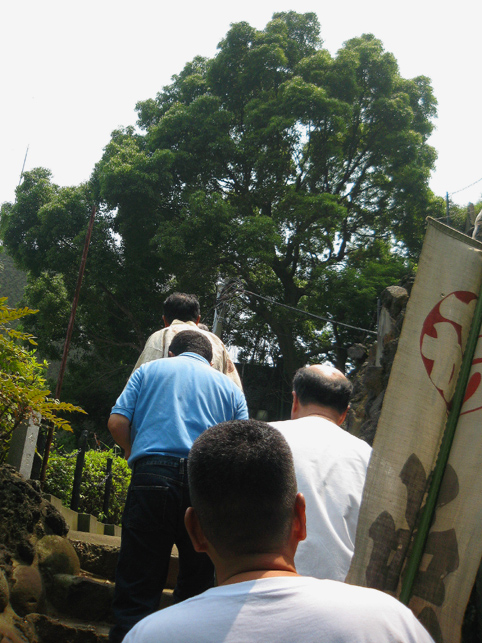浅間神社の社殿を出て登拝をいたします。講の方たちは全員裸足で歩きます。