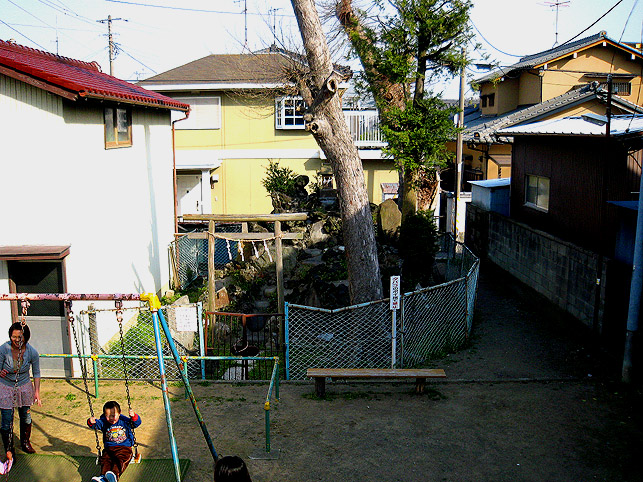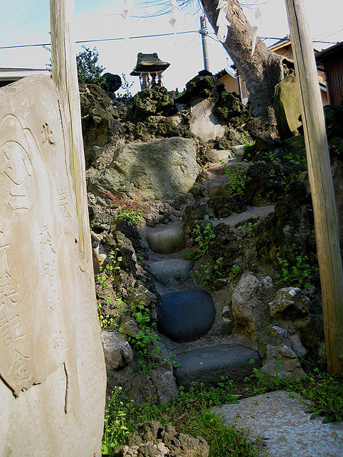 そもそも行徳は、中世にこの地域の開発に尽力した修験者、金海法印の敬称でした。この人が伊勢内宮の土砂を運んだとかの記録もあるようで、ここにも豊受大神を祭った豊受神社があります。ちなみに伊勢宿は伊勢参りの船が出たところ。 成田詣でや伊勢詣で、またしょっぱい産業(塩)で賑わう街道沿いに富士塚があったのはあまり語られていませんね。この講は「山不二講」といって、船橋や浦安の富士塚にも多く見られます。 千葉県に富士講が入って来たルートはおおよそ3つあるようで、(以前ちょっとふれましたが)市川市あたりの富士講は埼玉から江戸川経由で来たものと、江戸東部から伝わったものと、講によって違う気もいたします。「山玉講」は深川からなんですが、「山不二講」は内陸にもあるわけで。(浦安には両講あります) とにかく「山不二講」、大きいようです。 つづく。。。 立派な八幡宮の鳥居をくぐり、本殿に挨拶した後、裏手に回ってみます。 公園のように遊具があるスペースの端に、 こじんまりした富士塚がありました。 ちゃんと祀られていない荒れた富士塚に見えますが、実際はそんなことはありません。確かにフェンスに囲まれていて、うち捨てられたような扱いです。でも、しばらくひだまりの中、塚のそばにいたら、とてもくつろげました。なかなか気持ちのいい一隅です。 立て看板は「登るな」でなく「タバコすてるな」となっている。登るなじゃないからおとがめはナシ(笑)!子供たちがいなかったら門扉を開けて登っていたのですが。残念。すべり台の上に昇ってみました。 では、近づいてみます。実は立派な塚だったのですよ。 |