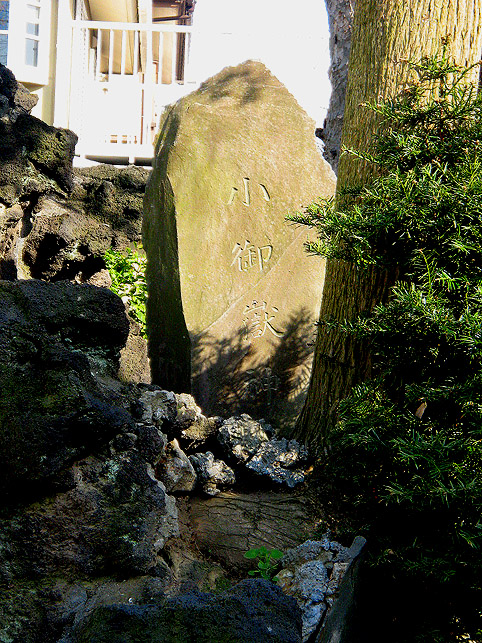 そして右側には、欠真間(かけまま)の元講(への?)石碑。すぐ隣の欠真間もかつては塩田地帯だったようです。大津波で真間村の一部が欠けて流され、その土砂でできた村と言われています。 そのちょっと右上には分厚い碑。行徳町と刻まれていました。だいたい3合目の高さ。 そして、小さな塚ながらお中道がしっかり作られていて、真上から見て3時の位置にこれ。 小御嶽神の石碑。これはかなりデカい。中道の上に建っているけれど人が歩く幅はあり、ホントに登って歩いてみたかった〜。 その横にこの木が。富士塚が出来てから大きく育ってしまったようで、そのうちボク石も砕いてしまうでしょう。まあ、そうなったらしかたないけど。よく見ると蝉の抜け殻が山のように残っていました。富士塚は時折、小さな森の役目もしているのですよ(笑)。いろんな生き物がいてね。