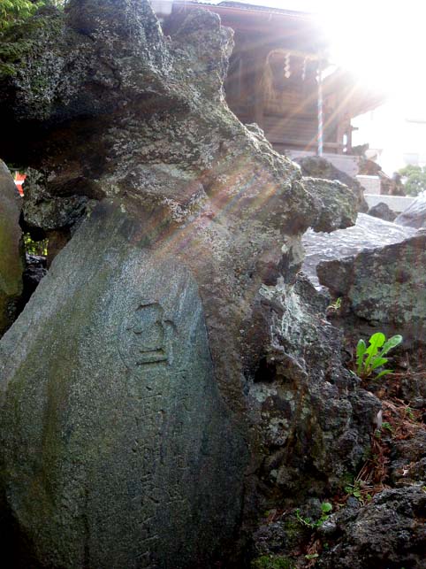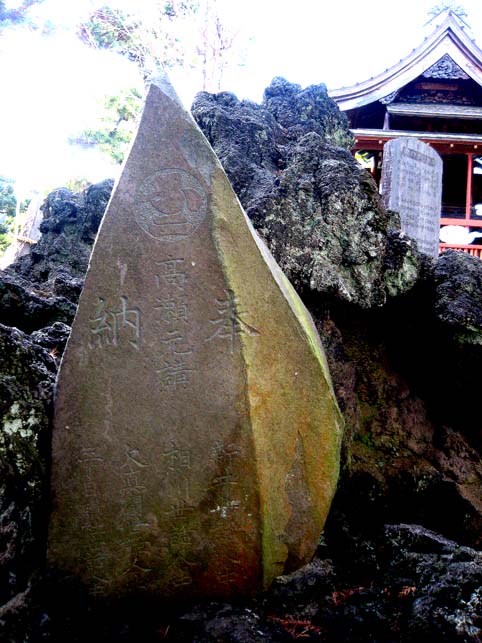 限られたスペースと建材であってもちゃんと富士はできる。 小御嶽大神の前の大きなボク石がいいカタチ!同じ山不二講の猫実富士の小御嶽の位置に全く同じバランスの岩があります。天狗像の背景に躍動感持ってたたずむ岩です。おそらくこれは天狗がいなくてもその存在を表わしたものでしょう。(私ならそうする!作る気持ちがわかるから♪) 上から撮った写真には小御嶽大神につづく道が見えます。さしずめお中道。人ひとりがやっと通れる幅だけど、このコンパクトさがいい。コンセプチュアルな造形にぐっときます。宗教家や研究者にはわからないでしょうが、アーティストの視点とはこういうところなのであります♪(笑) そして、ちょっと引くと見事な烏帽子岩。大きな石碑の隣の赤い岩がそうです。「えぼし」と刻まれていなくても形だけで表現です。たまにありますね。 祠の左側(右側には大澤くずれ)に下山道があります。儀式をする際には人の流れが大事ですから、簡略化されていても重要な点です。この4段をくだって左折すると、古い年代の講碑が並べられています。 斜前面と斜背面からの図です。確かに、一見、築山として登る楽しみがなくて素通りされそうな富士塚です。でもそれぞれの岩に意味があり、またそのコンセプトがわかればこんな愉しいことはない。珍しい塚かもしれません。祠の前に立ち、全体を見下ろすと改めて実感できました。フラットな富士塚ですから、ある意味平面富士塚とも言えるでしょう。そこを歩きまわることで富士登山もできますからこれは究極です。小さな富士塚に出会ってもすぐ落胆しないでまずゆっくり観察が大事ですね。意外な喜びが湧いてきますから(ちなみにちょっと似てるけど稲荷鬼王神社にある西大久保富士のつくりは全く別) てなわけで、私も自分の平面富士塚作品に会う為に、明日展覧会会場へ行って参ります〜。 |