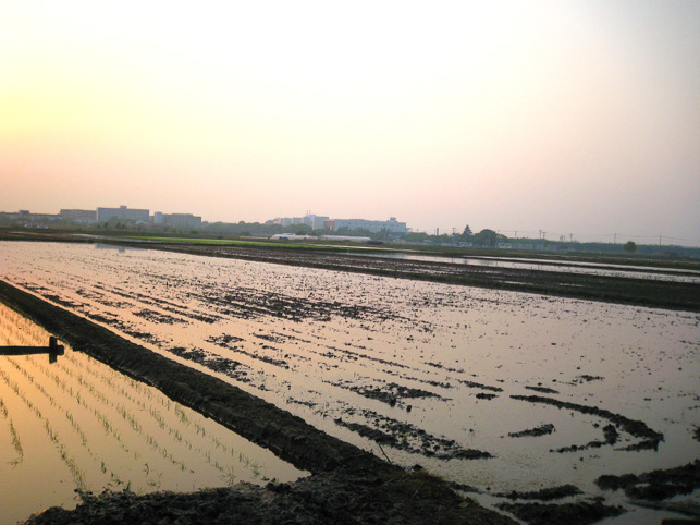 そこは、いきなり広がった光る水……見渡すかぎりの水田でした。