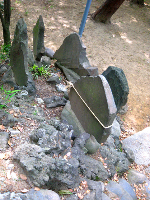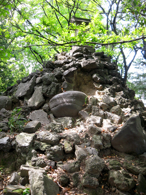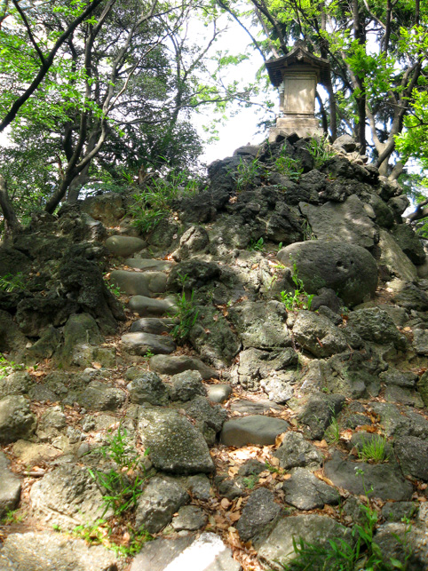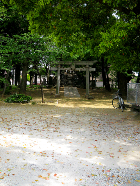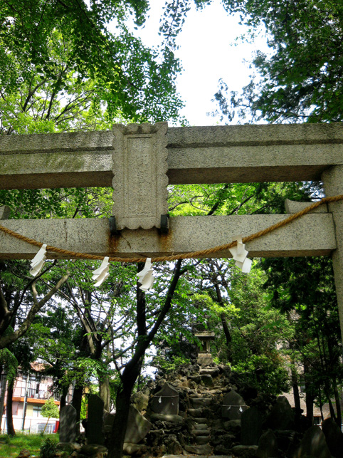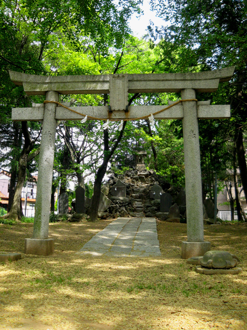 おびただしい数の碑がありました。(きりないので省略) 中にはこんなシンプルかつ美しい碑も! そうそう、富士塚、富士塚っと。社殿はこんな風に広い台座に乗った感じです。まさかこれ自体が富士塚なんてことはないだろね。。。 それにしても、浅間神社はあったけど、map上の小御嶽神社とは何だったのだろう。。。 と、思ったら、社殿の裏は広い空き地。ああ、富士塚ないのかなー。 空き地に下りてみました。ふら〜っと年配の方が歩いている方向へ足が向くと、その先にこんもりした森が見えました。 もしや?もしや? やっぱり呼ばれたか?この時点で、私の心はワクワクです。ずんずんと足が進みます♪ かなりの大きさの森の中に、かなりの大きさの富士塚が! ヤッタ〜! ここは「小御嶽神社」。浅間神社のずっと奥にあったなんて!