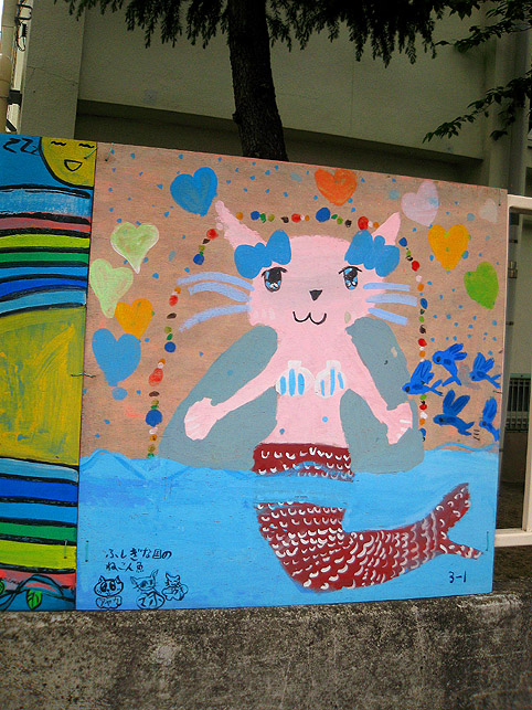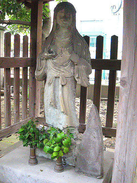 平積みになっていた「五月女ケイ子のレッツ!!古事記」が目に入り、手にとりました。コノハナさまが出てるかなーと思って。ほとんどの人は、この人の描く「脱力イラスト」を目にしたことがあるでしょう。 おかしくておかしくて立ち読みしながら肩を震わせていました。 でも読んでいるうち、あ、そうだ!と即帰宅したのでした。 こんな写真を撮っていたのだった! あめのうづめのみことの石像です。あやしいです。聖母のようでもありヘンです。五月女ケイ子のイラストマンガを見たので思い出したのでした。 あめのうづめは、富士塚には関係ないのですが、(流山富士にはあったけど) この富士塚の傍らにありました。 そうだった、そうだった、保木間富士の記事の途中だった! 最近行った、あんな富士やこんな富士のことは、また後日。。。 シュールな子供絵になごみながら、裏道を行きます。(これは富士塚には関係ありません。ちょっとカラフルな画像を入れたくなっただけ。笑) 伊興富士から1km余、竹の塚の東に隣接する西保木間というところにやってきました。渕江小学校の向こう側に神社があるような気がする。。。と目標を定めて学校の角を回りこみました。 ほどなくしてあらわれたのは保木間氷川神社。この神社の前の道は「流山道」といって、日光街道がこの保木間で分かれて成田山に続く道でした。西へ向かうと西新井大師に行きます。そんなことから、「成田道」とか「大師道」とも呼ばれたそうです。(そうそう、このまま東に進むと花畑につながり、素晴らしい富士山の絵馬があるという「花畑大鷲神社」もあります)ちなみに「流山街道」とは違います。 富士塚についての表記もない、静かな氷川神社の奥に行くと。。。ありました。富士塚、富士塚。 あれ?鳥居に掲げられていたのは「榛名神社」??? |