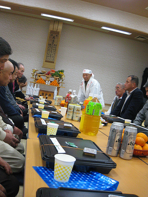 中里富士の頂上にて、しばらく御神酒をいただきながら談笑の時間です。