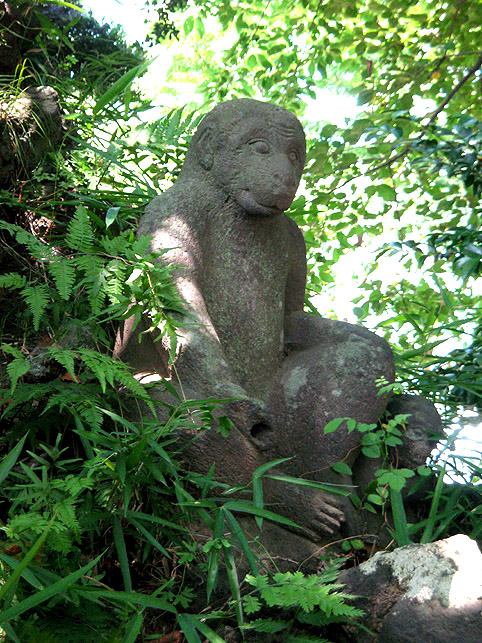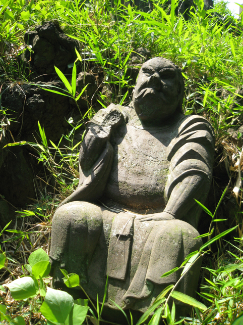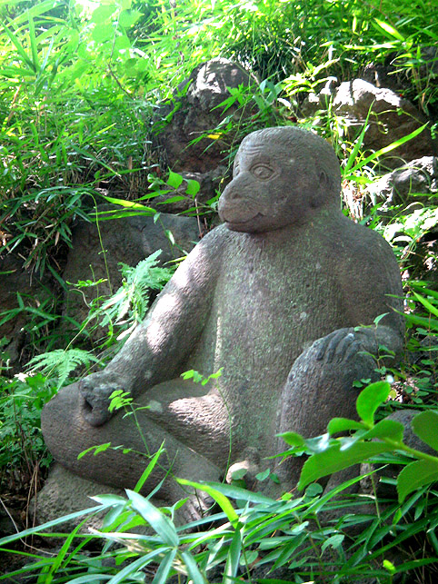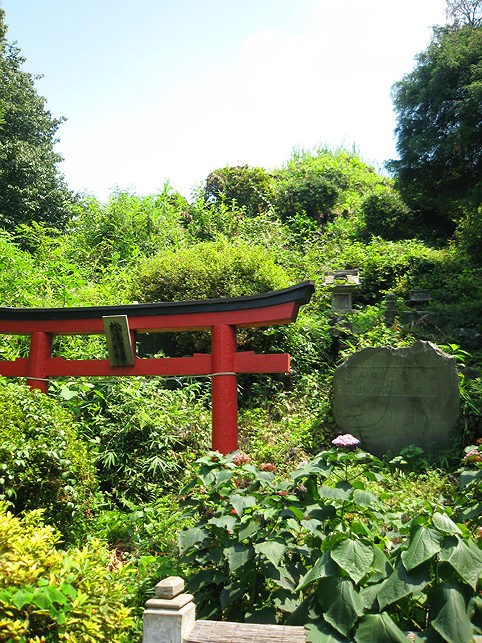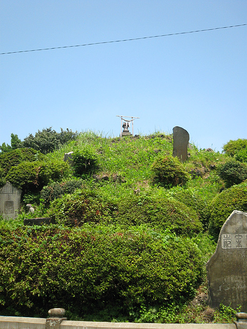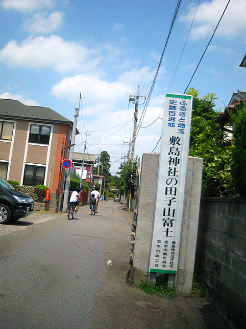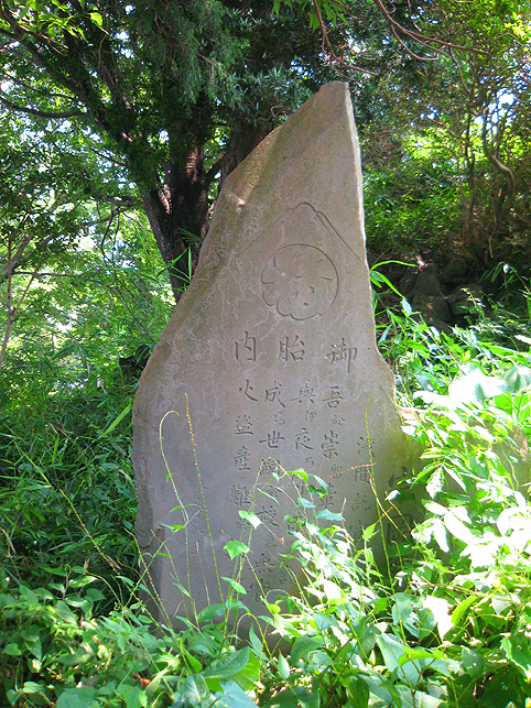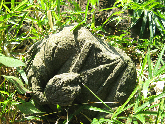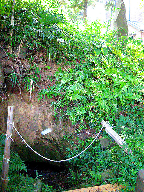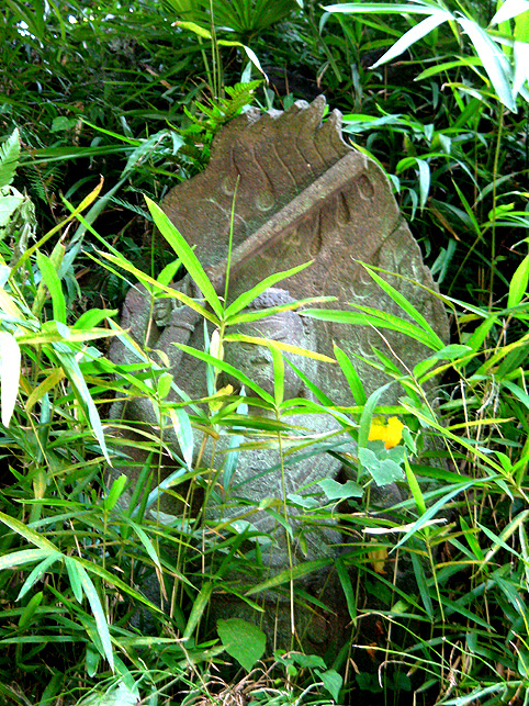 でも、保存会の会長さんに聞いてみたら登山禁止ってわけじゃないそうだ。「登れるものなら登ってごらん。壊れてっから」というニュアンス。そうと聞けば、登ってやろうと思うワケです。 とりあえず、登山口を探す前にお参りを。あ、敷島神社の本殿はとなりに立派なものが建ってますが。 浅間神社。講は丸吉講ですね。 確かに、子供向けに「登っちゃダメ」のサインはありました。子供がいるので、オトナは目の前では登れない。タイミングを見てからということにして、裏へまわります。途中、塚の左側面にあったのが、松尾神社。きっとここらからも登山道はあるのだろう。 ちょっと進むと御胎内の碑がっ。かなりデカい。 回りこんだところ。わ〜。大きな人穴だ。入れないし入る気もないが。。。あれ?何か飛び込んだ!?!?!? |