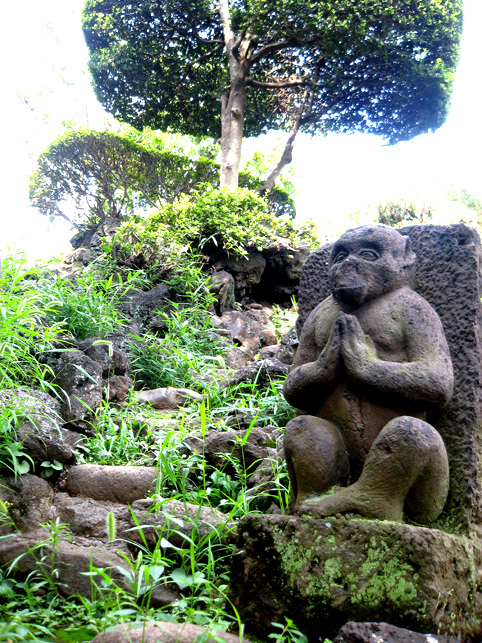 ひとつ前のカフェを、富士塚から見た図。 下練馬宿は、川越街道にある宿場のひとつとして人の往来が多かった場所。富士塚のある浅間神社とカフェの間の道が、旧川越街道です。北一商店街がその街道です。 下練馬富士。こんな猿に迎えられます。正月過ぎには頂上の奥宮にお供えが見られることでしょう。 以前にも少しずつ書いてましたが。。。 ガーゴイルのいる富士塚 このちょいグロさが welcome to fujizzz 仰天の発見 ほか