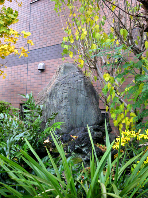 鳥居の向こう側(この画像では右側)の道路は、かつて神田川の土手だったようです。その上に道が走っていたのでしょう。関東大震災(大正時代)の後、この道路に店が連なってでき、富士塚の上部が壊されたらしいです。また、位置も神楽殿あたりまであったそうで、当時は相当大きかったと思われます。戦後、移動のために解体されたとのこと。きっと以前は、ちゃんと山の形をしていたでしょうが、結局ボク石をここに積み上げただけになったのですね。 塚の背後はどうだったのかわかりませんが、現在はこんな感じでビルに迫っています。この石碑は「三柱之大神」。神様を柱と数えます。てことは、この場合、コノハナとオオヤマツミとニニギでしょうか?他の富士塚でも目にすることがあります。 中段には洞窟状に作られた中にお宮。 そしてこの講碑があります。ちょっと倒れかかっていました(金属片で補強済)。丸京講という講でした。 江戸時代、江戸のド真ん中の富士塚のひとつですね。