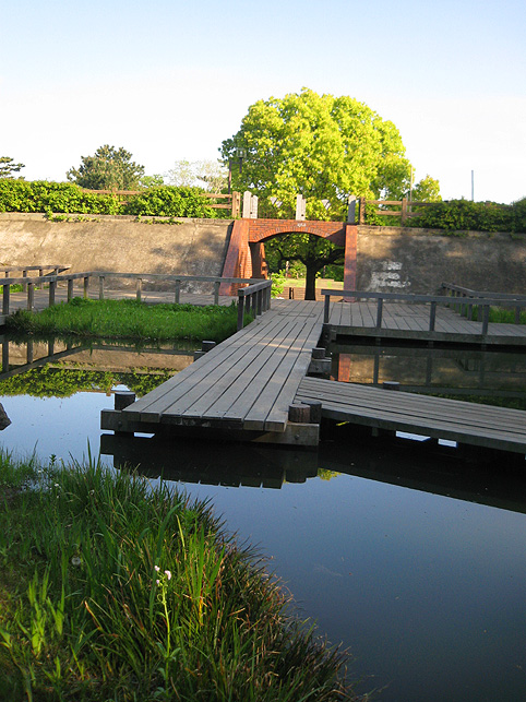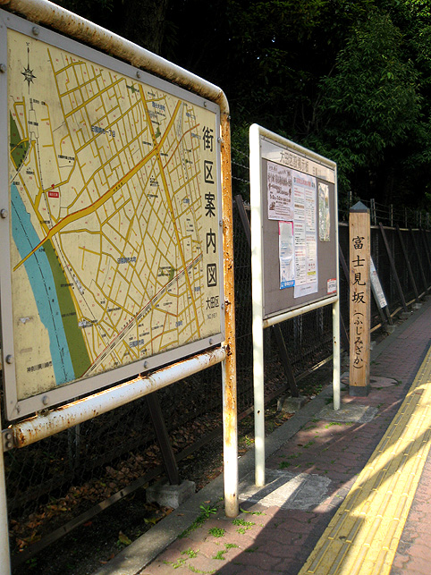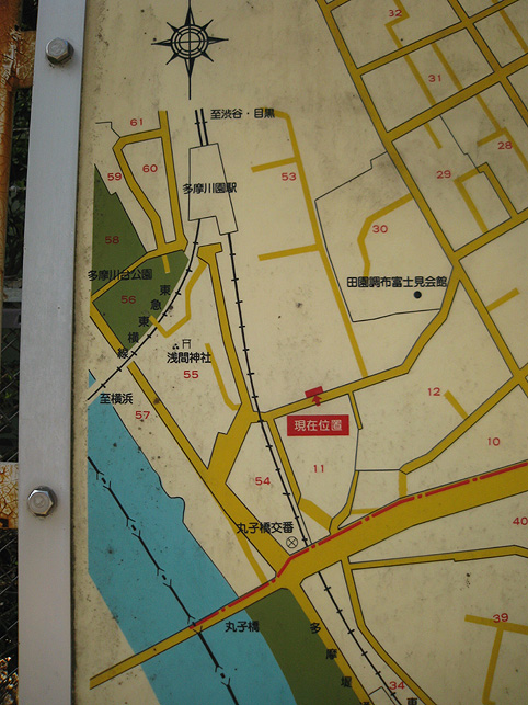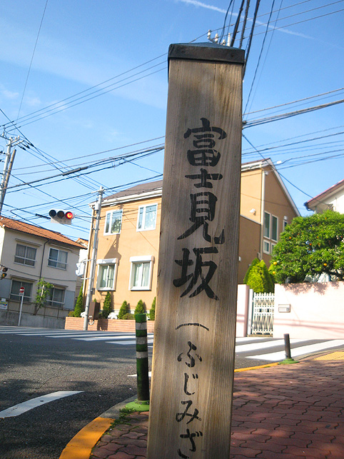 「富士見坂」と呼ばれる坂道になります。 古い「街区案内図」や「掲示板」も建っています。 昔は、多摩川駅は多摩川園駅という名でしたし、東急の沿線名も変わっています(2000年8月6日 目黒線と多摩川線に分割され、目蒲線は消滅。多摩川園駅を多摩川駅に改称)。 坂マニア、また富士見坂マニアも多いでしょうね。数ある富士見坂のうち、いくつの坂からまだ富士山を拝めるのでしょうか。 坂を上ると左手の森がなかなかいい感じ。 この富士見坂は「大正末期頃から行なわれた耕地整理によってできた」そうです。もちろん、ここから富士山がよく見えたというからその名がつけられたのですが、現在は坂のまわりは建物が密集し、富士山はおろか多摩川も見えません。でも坂道に立てば、富士山の方角が簡単にイメージできます♪ 「ああ、あのマンションの住人はきっと見えているんだろうな〜」「い〜な〜」 上りつめたところは閑静な住宅街。 富士見坂は多摩川沿いに他にもあります。なんたって富士山がよく見える一帯ですから♪ それから、多摩川駅に入る前に10分だけの寄り道。 多摩川台公園のあじさい園から昇り、亀甲古墳の手前まで散策しました。 この地域は、その昔、多摩川の水を汲み上げて飲み水を供給していた「調布浄水場」を利用して造られました。当時の形をできるだけ残し、池には湿性植物が植えられてます。 とても気持ちいい空間で、思わぬ道草にハッピ〜になれます♪ オススメ。 ★★★★★★★★★★★★★★★★★★★★★★★★