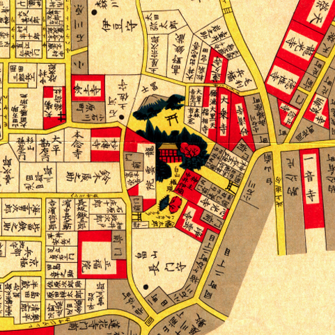 浅間神社は、浅草寺から北に約300m離れていて、かつてそこに富士塚(といいますか、なだらかに盛り上がった小山)がありました。そこは、富士山から【裏鬼門】の位置で、昔はその小山から富士山がよく見えたそうです。 そして、お富士さんのお山開きに合わせ植木市が立ち、その賑わいは大変なものだったと言います。 現在は「お山開き」を知らなくても植木市はよく知られています。(植木市は、他の富士塚でもさかんでした) 浅草寺のことを、江戸っ子は「観音様」と呼びます。浅草寺のご本尊、観世音菩薩のことです。浅間神社に続く道、つまり「富士通り」を指す時、 こんなふうに「観音裏」とつけると、ぐっと江戸情緒が伝わってきます。 富士通りは、浅間神社の参道でもあります。 今は平坦な地形ですが、 昔はどんな感じだったのでしょうか。少しは面影がありますか? この神社の向かいに、艶のある黒富士が、 灯のともった提灯を映していました。これは、 富士っ子の学ぶ「富士小学校」にある碑。 いつもは閉ざされている社殿の中は、こんなに綺麗。 富士通りの西側、六郷家の下屋敷跡あたりの通りに市が立ちます。かつては400店もあったけど、現在は約60店。ちょっと寂しいです。 でも、参加者は大喜び♪いろいろ購入されました。「お富士さんの植木市で買った木はよくつく」と伝えられています。 金魚すくいの店はどこかレトロ。 これは金魚売り。まんまる金魚や 私の好きな金鯉も。 それにしても、このへんは、何でもかんでも富士さん。 近所の富士公園のトイレもです。 そうそう、浅間神社の境内にも、こんなのがあった。 喉が乾いたら、この、氷富士♪ 花やしき西側にあるひさご通りの「初音茶屋」は、氷の扱いにこだわりがあります。氷は「やわらかく」してから「かく」のです♪ ★★★★★★★★★★★★★★★★★★★★★★★★