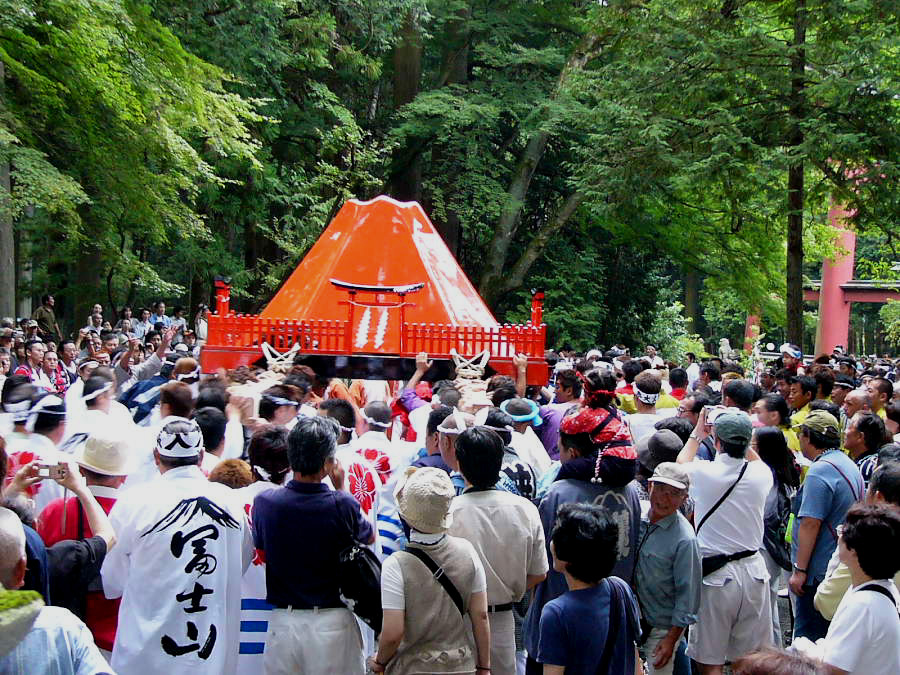 富士吉田の火祭りです。これから富士山に向かって出発〜♪