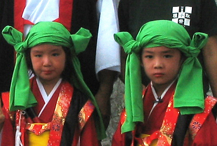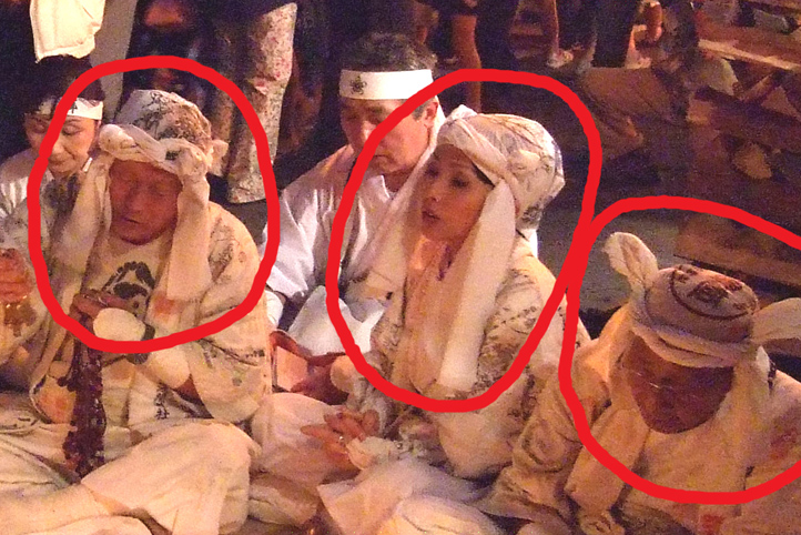 竹富島のことにふれ、もうすぐ竹富島の種子取祭だと気づきました。 今年は行けないけれど、一昨年の祭りでアップした、ミルク(弥勒)の登場を思い出し、ちょっと気になることが出てきました。 子供達のかぶりもの、「サージ」というのですが、 何かに似ていますね♪ 「宝冠」です。 「山村民俗の会」発行「あしなか」の「修験道覚え書」によると、山伏の頭襟(ときん)つまり宝冠(ほうかん)は、即身即神(その身そのまま神)の体性を表わすもので、五智円満の神の宝冠とのこと。五智とは神の五つの智恵、即ち人間として覚るべき五つのことがら(大きく円満な心、円満で平和な心、正確に観知する心、働きに無駄のない心、神に通じ覚りに通じる心)だそうです。 長さ1丈2尺(1尺が30.3cm/1丈=10尺なので、1丈2尺は約3.639m !?)の白色のサラシを巻きます。 これはその冠り方(富士吉田市教育委員会の資料から部分転載したイラスト)。 上の写真、火祭りの時の3人は、微妙に違う個性が出ていますが、この基本で結んでいるようでした。斎藤先達(左)によると、「いざという時にこれを解いて命綱として使うこともできる」。 では、子供が冠っているサージの由来はなんだろう??? (サージにはいろんな種類があって、エイサーでよく見るサージは違う冠り方) 多少、結び方が違うかもしれませんが、見た目は宝冠とよく似ています。 ナゼかしら。 う〜ん。う〜ん。う〜ん。 こんなサイトに行き着きました(竹富島では「サジ」と言うらしい)が、それ以上のことはわかりません。