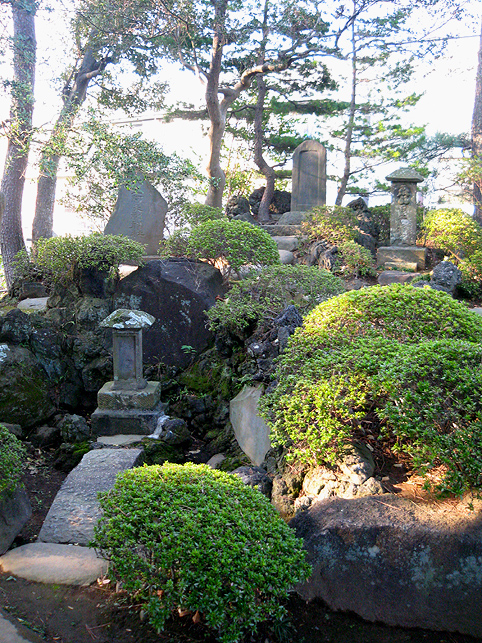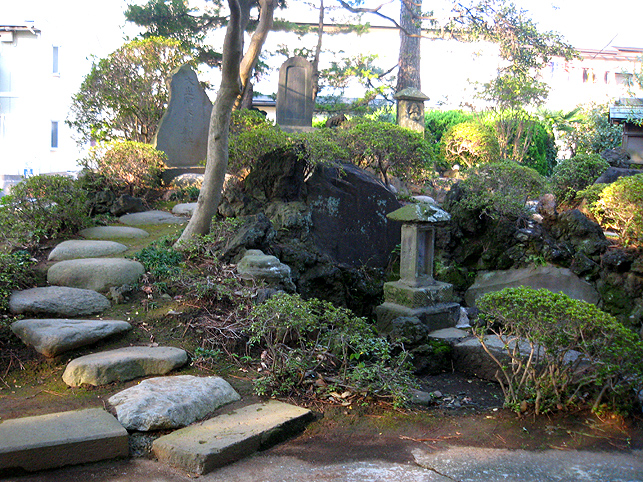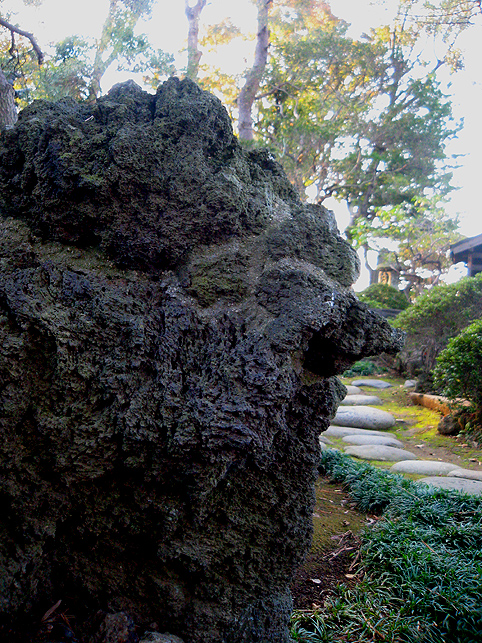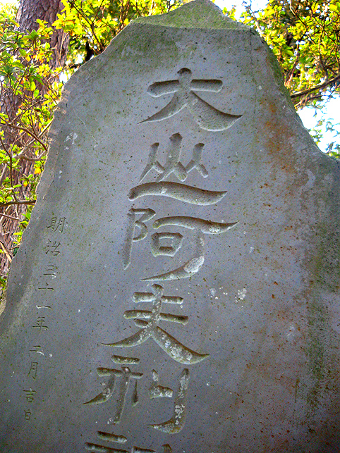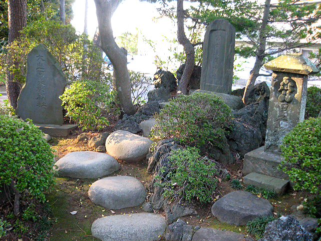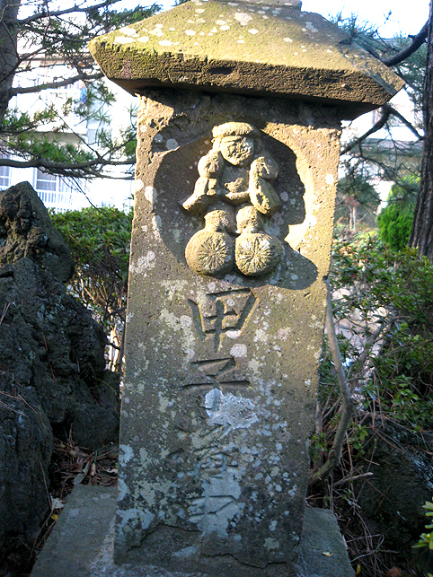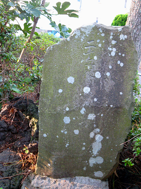 とにかく、右側にまわりこんでみます。 にしても、平べったい築山だなぁ〜。小さな庭園みたいです。 低い石段をゆっくり登ると、 大ぶりの溶岩がありました。やはりこれって富士塚??? 二十三夜溝の石碑は、富士塚で見ることもありますが、先の月夜見神だって「月待ち」として二十三夜溝に関連あるし。。。 と思えば、 三峰神社もある。 大国様がくっきりの甲子講の碑。(甲子-きのえね-講は、大国神を信仰しています。大国さんは、インド由来の神様で、日本では「農業」「商売」の神として知られています) その左に、 ようやく「冨士浅間神社」の碑。でもちょっと暗くて目立たず。 その左には、 大山阿夫利神社。 このあたりが頂上でしょう。冨士浅間神社のまわりだけ、ちょっと特別にボク石(溶岩)があしらわれています。それでも低い山。 大山阿夫利神社のところから、下山したところ。反時計まわりに歩いてみると、 手前には、水のない池がありました。石橋を渡ると弁財天です。 池の中にあったのが、 「冨士浅間宮」「四國弘法大師」「道了尊」「井戸側」 の建設に寄附した人々の名前。やはりここは、異なる神々の宿る場所? つづく。。。