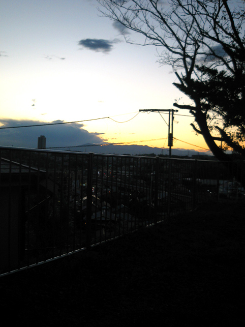 西谷富士の全景をちゃんと撮ろうと思って、少しずつ正面を見ていました。 浅間神社の碑に並んで、いくつかの神社があります。これは山神社だったかな? もっと寄ろうと思いつつ、西の空が気になって見てみました。 残念ながら西日は拝めず、富士山も雲の中。大山だけが形を見せていました。 すると、背後に人の気配を感じました。 坂を登って来た御年配の女性が、少し息をはずませながら近寄って来ました。 どうやら散歩の様子。手に巾着袋を持ち、にこにこ立っています。 私もつられてにこにこ。 「やっぱりダメ?見えない?」 「雲がかかっちゃいましたね」 「あ〜。午前中よく見えたって聞いたから来たんだけど。。。」 「あそこ、雲が分厚いですね」 「う〜ん。残念」 まるで知り合いのような会話からスタートしました。なんだか可笑しい♪ 女性が見たかったのは、もちろん富士山です。 彼女はいきなりおしゃべりを始めました。とても気さくに。 この土地のこと。家族のこと。自分が生まれた北関東のこと。。。 それはたわいないことばかりだけど、聞いている私は、とても楽しくて幸せな気分になりました。実はこういうの、富士塚をめぐっていて時々あるのです。嬉しいです。 「この富士山ね、昔からここにあってね。子供達はいつもこれに登って遊んでたものよ」 「道がぐるっとついてますね。私も登ってみたら楽しかった♪」 「そうそう。そこをかけ登って〜。うちの息子も、小さい時はここが遊び場だった」 このくだり、富士塚のそばでよく耳にします。浦安でも聞く話でした。 「でも今は、ここで遊ぶ子もいなくなった」 「子供は外で遊ばなくなりましたね」 「大人がいけないんだよ。危ないからダメってすぐ言う」 「塾もあったりして忙しい」 「そうそう。今の子はかわいそうだよ」 「小さい時に外で遊ぶのって、大事だと思いますけどね〜」 「どうせ大人になれば落ち着くんだから暴れてればいいのよ。うちの子なんか…」 そんな話が延々と続きました(笑)。 富士塚の前で、何十分立ち話をしたでしょう。だいぶ暗くなってきました。 話をしながら、私は内心「もっと明るいうちに富士塚を撮影しておけばよかった」などと思いました。 でも、富士塚はまた来れば見られるけど、この人とまた会うことはたぶんないだろう。そう思うと、この時間が有り難くなりました。夕暮れがくれたギフトみたい。 そして、女性が説明してくれる富士塚の裏側を見たりしながら、登って来た道と違う道を、ふたりで一緒に下山しました。今でこそ山の斜面には住宅がびっしり建っていて迷路のようですが、昔はだいぶ違ったようです。 楽しい散策でした。とっぷりと日が暮れてしまいました。 女性は私の帰路を気づかい、わざわざ国道まで見送ってくれたのでした。そして別れ際、私の手を取って言いました。 「すごく楽しかったわ〜♪」 私もです♪ ありがとうございました。