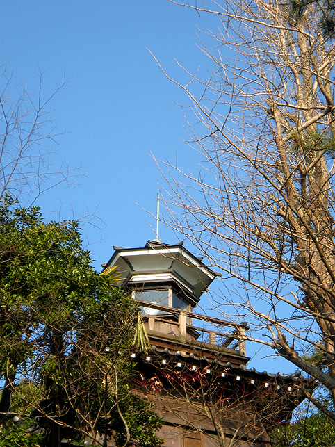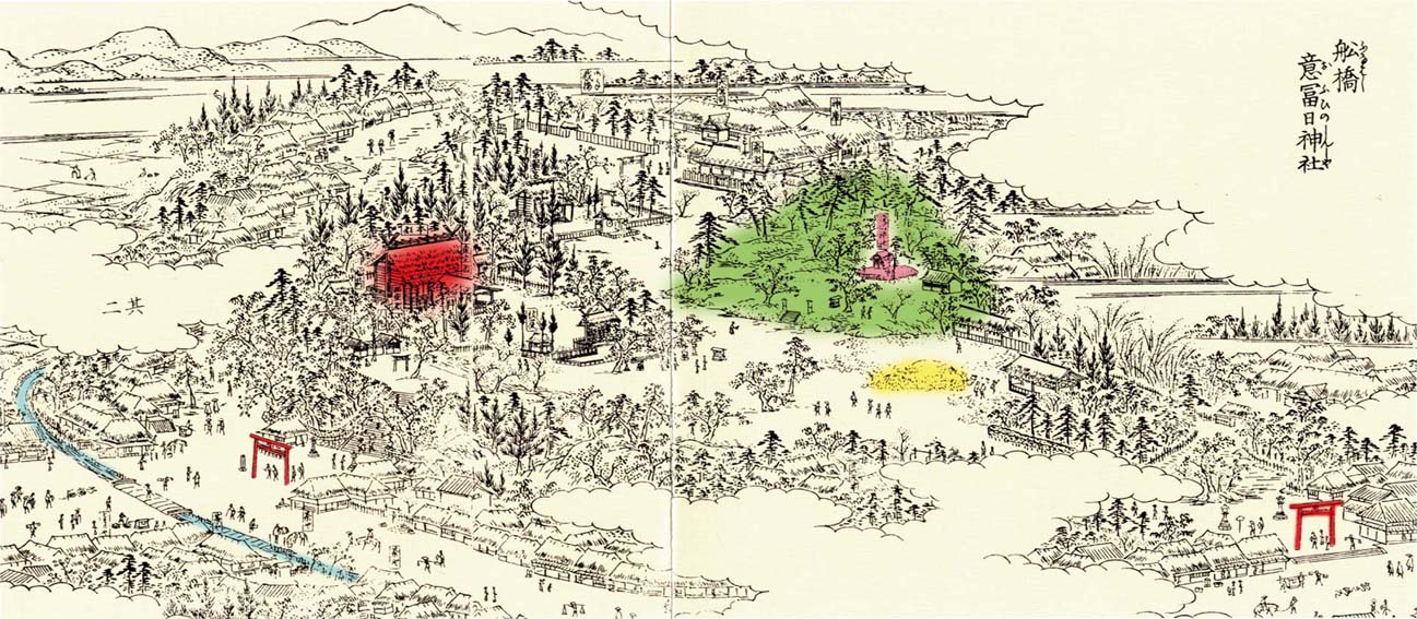 約2か月ぶりに、自由にブラつく時間がとれたので、船橋大神宮の灯明台に向かいました。 行きたい富士塚はいろいろあったけれど、ここを選んだのにはちょっとした理由がありました。少し前に、東京湾の灯台について調べることがあって、その際に、東京湾最古の灯台として知られている「船橋大神宮の灯明台」にふれ、それからずっと気になっていたのでした。 船橋大神宮の灯明台は、現在は使われてはいないけれど、その建築様式が魅力。そして、灯明台の立つ場所が富士塚かもしれない、というのが今回訪れた理由です。 私の予想では、稲毛浅間神社のような「浅間山」でした。でも実際訪れてみると、ちょっと違った印象を受けました。 今は、海岸線が遥か彼方にあり、昔の面影とはほど遠いはずですが、木造の灯明台は確かにライトハウスの雰囲気でした。宮司さんによると、毎年成人式前夜に「灯明台祭」があり、夜5時から灯りがともり、神事があるとのこと。次回は1月10日です。ちょっと気になるイベントですよ♪ で、浅間神社の存在はというと、普段は閉まっているけれど灯明台の隣に現存するそうで、しかも宮司の言葉「奥は山になっているんですよ♪」に、これはちょっと探検の価値あり、と思いました。 江戸名所図会にも描かれているこの船橋大神宮は、意富比(おおひ)神社ともいいます。左下の海老川を青く着色、麓にある鳥居と本殿を赤くしました。右下の鳥居から入るのが表参道。中腹には土俵があり(黄色)、奥に浅間神社(ピンク)。盛り上がったところに、少々強引に緑色をつけました。全体がなだらかな山なのですが。 つづく。