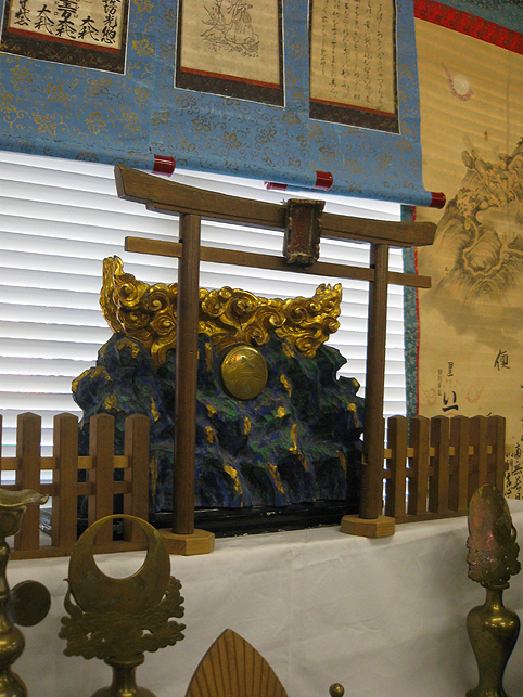 田端富士を下りて、一行は祭壇のある場所へと移動しました。 通常は、田端八幡神社の境内の散集殿というところで拝みをするのですが、今年は改築のため、参道下に設えた仮の建物で行うことになりました。 八幡神社のすぐ西隣には、赤紙仁王(体の悪いところに赤紙を貼ると治ると言われる)で有名な、東覚寺があります。仁王像は、赤紙に埋まって姿も見えず。 寺の前は、ついこないだまで細い道だったのに、区画整理でこんなに見通しがよくなりました。 道を指差し、講元が言いました。 「この道が『弾丸道路』だよ」 「え?ダンガン?」 「そうだよ。戦争時に海の方まで運んだ道さ。北にずっと行くと赤羽団地だよ」 もっと詳しくお聞きしたかったけど、儀式が始まるので断念し、皆さんの後を追いました。 祭事の行われる会場の入口に。。。あ、神田の講から? これは田端の富士講、「山元講」のマネキです。 さて、祭壇ふたたび。田端冨士三峰講のお宝は、以前から調査報告書で知っていましたが、本物を拝見するのは初めてです。(初拝みは一般公開しているわけではなく、内々のことだから当然と言えば当然ですが) 講のお宝である祭祀具は、【北区のサイト】に出ています。 「田端冨士三峰講祭祀具 附 関係文書」を北区指定有形民俗文化財に指定(指定日平成21年12月9日) 掛軸や祭壇の品々は、手入れもよさそうですごく美しい。 でも、なんとなくヘンだ。 あれあれ? こちらから見てもやっぱり。 大事なものが足りない(!?!?)。 これは、講の方が持って来られた昔の写真。 そうです。富士山型の御神鏡がない。 (どうやら私だけが気づいたようでしたが)儀式は滞りなく進みました。 文化財に指定されたとはいえ、講の方たちにとっては自慢の祭祀具よりも ココロのほうが大切。こんなハプニングも微笑ましい、和やかな集まりでした。 ほんの一部ですが、素晴らしい品々をアップ。 紋は、山元講の前身である「丸長講」です。 などなど、どれもが丁寧に手入れされています。 そして、全員で読誦する「お伝え」。感激でした。 やはり、声に出すのはすごいと思いました。 3年ほど前のこと。私が敬愛するネイティブアメリカンの指導者、デニス・バンクス氏が来日した際、とあるお寺で、彼の歌に合わせ全員で般若心経を唱えたことがあります。全く違うふたつのものでしたが、途中から素晴らしいバイブレーションを生み、感動と共に「声による浄化」を肌で感じたことがあります。 拝みをしていても、たまにそんな瞬間があり、驚きます。 そうそう。御師のSさんが富士吉田からいらしていて、プチレクチャーに盛り上がりました。偶然にも、Sさんは、昨年私が火祭りツアーの際お世話になった方たちとも懇意で、私の本も御存知でした♪ つづく。。。 ★★★★★★★★★★★★★★★★★★★★★★★★★★★★★★★★ 【富士塚ナイト】は、3月14日ですよ♪