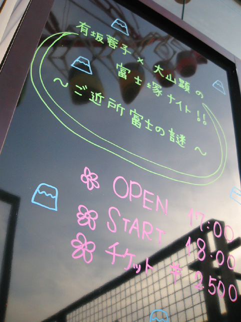 御来場くださった皆様、本当にありがとうございました♪ 心より感謝いたします。 イベント会場である、お台場 ZEPP TOKYO2階、TOKYO CULTURE CULTURE (東京カルカル)は、大観覧車のお膝元。看板にも観覧車が映り込んでいました。 こんなマイナーなテーマでもいらっしゃる方がいるのだろうか、と不安でしたが。。。 集まってくださいました。例によって、一番楽しんだのは私ですね♪ 迷走した私でしたが、大山さんの絶妙な仕切りのおかげでイベントのカタチとなり、楽しんでくださった方が多かったようです。ありがとうございました。 限られた時間のため、紹介したかったモロモロは4分の1でしたが、少しでも富士塚の魅力が伝わりましたらそれで充分です。近くに「富士塚があるかもしれない!」と思ってくださることが本望ですから。 また新しい切り口で本を出す予定ですので、今度とも富士塚をよろしくお願いいたします。 富士塚ツアーもまたやります。御参加くださいね〜。 さて、こういう場では新しい情報も飛び交います。 「○○の庭に富士塚らしきものがある!」と御提供くださったり、私が行ったことのない富士塚の詳細もたくさんいただけました。本当にありがとうございました。 リアルタイムで見たTwitterのアップも面白かった♪ 質問がつぶやかれ、画面を見てそれに答えたり、話をふくらませたりと♪ 本当にお世話になりました! ……………………………………………………………… 追記 3/17 富士塚ナイトに関する【つぶやきまとめ】です。 errieさん、ありがとう! ……………………………………………………………… そして、イベントならではのお遊びに、「富士山御神籤(相性のよい富士塚付き)」も引いていただいたり(1〜5富士で表わした吉凶?)、ジャンケン大会でプレゼントもお渡しできました。 ↓プレゼントがコレ。 「あま〜い溶岩」は、実は砂糖菓子なのです。おそらくコレをゲットされた方は、本物の溶岩だと思ってらっしゃると思います。「溶岩をコーヒーに浸すと甘い出汁が出るのか!?」と。 ごめんなさい(笑)。説明不足で。ちょっとおどかしてみたかったのです。 割るか削るかして、コーヒー/紅茶や煮物にお使いくださいね〜♪ ちなみにこの「あま〜い溶岩」は、富士山の麓の河口湖町船津で作られ、土産物として販売されております。船津と言えば、船津の胎内。(富士講による)最古の富士塚「高田富士」を築造した、高田藤四郎が発見した胎内です。 というわけで、富士塚に御縁のある土地から来たものですから、きっと富士山パワーも宿っていますよ! あ〜シャックリが止まりません。 イベント終了後のオフ会で充分飲んで来たのに、帰宅後また飲んでます。 明後日は某新聞の取材を受ける予定です。 その場所をこれから決めることにいたします。(実はこれが楽しい♪) そうそう、乃村工藝社の前身があの【浅草の人造富士山】を作っていたこと、てことは昨年のガンダムは現代の富士塚(!?)っていう大山さんの話は面白かったですね! いろいろ発見があって、いい夜でした♪