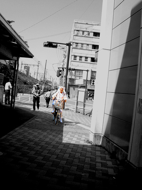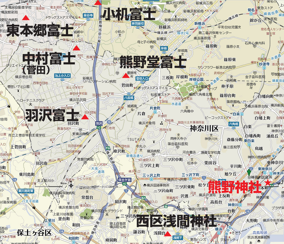 横浜神奈川区を中心にまわる「七富士参り」に向かいました。 京急の北品川駅を出ると、私は必ずゴソゴソとカメラを取り出します。 そして新馬場近く。 走行中の電車からこんなにきれいに品川富士が撮れたことはない。 縁起のいいこと♪ 待ち合わせの「仲木戸」駅で5人のうち4人が出会い、さて、先達とはどうやって会うのだろうかと思っていたら、 「あ♪ あれに見えるは先達さん〜♪」 宝冠かむりの布をはためかせ、白装束の御仁はギコギコと自転車をこいでいらっしゃいました。 印象的な登場シーンに一同感動すら覚えます。 「そうそう。○○側のね、○○で。。。」 合流するひとりと連絡をとる先達。携帯持つ姿も絵になります(背後には赤い京急の電車が通る)。 思わず行衣も撮っちゃう。渋い! 先達とは、昨年吉田の火祭りの時にお世話になりました丸金講神奈川講社の岩岡先達のことです。 この日めぐった富士塚(浅間神社の浅間山を含む6富士)と起点/終点の熊野神社はこんな位置関係。 つづく。。。