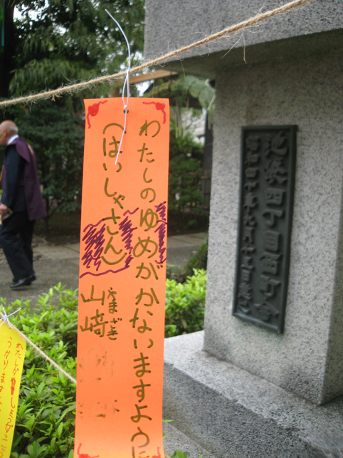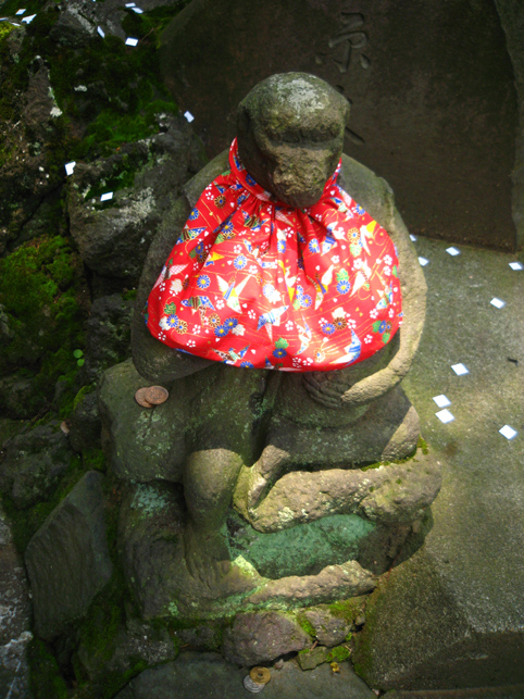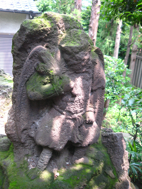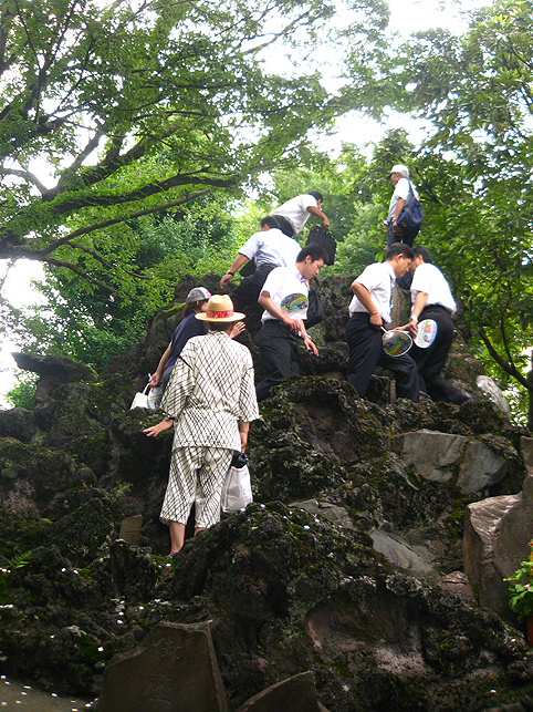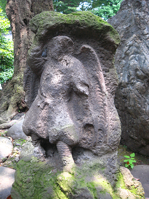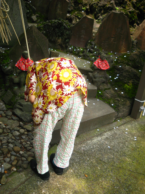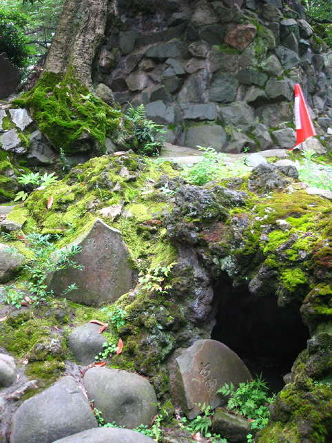 焼そばの後は、山梨に戻って「胎内」へ。 でもその前に、先週の7月1日のお山開きショットをいくつか。 唯一この日にだけ登拝できる池袋富士。過去に何度もアップしているので、あまり多くは語りません。スナップを中心に。 御胎内は塚の裏側。中に入ってすぐ左折すると下山道の真下を通り、木の根まで約3m続いている。オトナには入れませんけどね(笑)。さすが非公開ゾーンにあるこの胎内、中はとてもきれいでした。通常、富士塚の胎内は清掃の盲点で、おヘソのゴマのように気づくとゴミがたまるのです。 コミタケを挟んで、(小)烏天狗 & 大天狗。棒立ちでなく体の重心の取り方がいい♪ 動きが出てポーズよし。天狗はホントにバリエ豊富。そのうち、私による「富士塚天狗番付」を発表しますから♪ 木漏れ日が、正面登山口の母子猿にやさしくスポット。と思ったら「クリア待ち」。TVカメラも地元の方に譲ります。ススッと来られ、体を折り曲げて拝むトロピカル婆ちゃんは、拝み終わってもこの姿勢のまま退場されました。(腰の曲った方は、登山できても下山が困難。そんな方には後ろ向きに下りる方法が。でも、できれば登山は避けてね) 「昔はここでよく遊んだよ。ああ、コンクリじゃなくて土だった。もちろん毎年来てる。でもいいねぇ〜。ここで40年ぶりに友達と再会したことあるよ」 帽子がオシャレな役者さんでした。