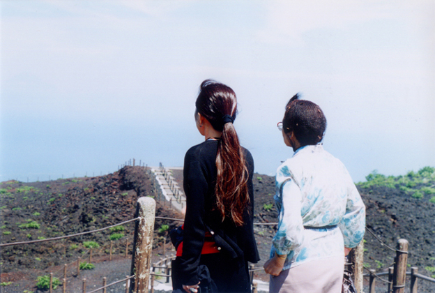 今年の富士山は、今までになく「山ガール」であふれかえっていることでしょう(笑)。 「元祖 山ガール」、私の母も現在富士登山中です。たったひとりで向かいました。 ブランクがあるものの、今回はたしか18度目。 以前の写真から。 頂上の「馬の背」を目指す母です。まだ富士山測候所の多面体ドームがありますね。馬の背ってホントにキツい!短い距離なのに何十分かかったことでしょう。母は私より元気でした。 サプライズ好きな母は、たいていひとりでこっそりと登っちゃう。こちらは、富士山から届いた絵ハガキを受け取って初めて「あら!行ってたんだ〜!」と驚くわけです。今回は、事前に(というか当日だったけど)バレてしまったけどね。 今頃どうしているんだろう。無理はしないとのことだったけど、大丈夫かしら。 富士山もずいぶん変わったでしょうが、自分の足と気力だけが頼りの富士登山は、やはり過酷なこと。若い山ガールたちも、途中から苦しくなり「これは修行かも?」とつぶやくでしょう。 馬の背を目指す母のように、堀江富士(浦安の清瀧神社)の斜面にも、頂上を目指す先達たちがいます。 蝉だって、頂上を目指し。。。 昔の富士講がやったように、私も母の安全祈願をしに神社と富士塚へお参りしてきました。 かつて代参講の性格を持っていた富士講は、先達と数人だけが富士に向かい、留守をあずかる講員たちは彼らの無事を祈ってお参りをしたのです。そして帰還の際には「サカ迎え」といって、提灯を持った村びとが一行を村の入口で出迎えました。 大丈夫と思っていても、祈願する。これは大事なことですね。気持ちはきっと富士山に届くはず。そして当人は富士山のサポートを得られるでしょう。とにかく無事に御帰還ください。 ところで、以前母と登った頃のことをいろいろ思い出しました。 伊豆大島の三原山に登りました。溶岩だらけの光景は私に何かを語りかけ、私はあらためて火山のすごさを知りました。ふたりが見ている先には、海を隔てて富士山が雲から頭を出していました。 バスに乗って見晴らしのよいところに立つと、富士山はもっとくっきりしていました。私はこの光景が忘れられず、この翌月に母と富士登山に出かけたのでした。 おまけです。 火山博物館で火山と溶岩の学習もしてきました。 入口にある巨大な塊。エアーズロックみたい?