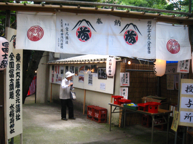 富士塚のお山開きで1番遅いところは練馬区の大泉富士ですが、2番目に遅いものは、富士講による最古の富士塚、早稲田の高田富士です。現在では、お山開きというより地域のお祭りとして知られていますが、富士塚が一般公開される貴重な2日間です。 2年前は「高田富士祭」、昨年から「高田ふじまつり」という表記になっています。 今年は、お世話になっているアウトドア業界のIさん、Tさんと一緒に出かけました。途中、中央区の鉄砲洲富士に寄ってきたので、待ち合わせ時刻をちょっと過ぎてしまいました。(なぜ鉄砲洲富士に行ったかはまたあとで) 2年前から、富士塚と富士講の資料コーナーが充実していますが、 今年はお札頒布の場所が移動し、 展示される貴重な品が増えていました。 丸藤講宮元講社の先々代先達の鮮明な写真なども、ファイルになって公開されていました。浅行先達は、比較的印刷物で目にしますが、この写真は初めてでした。目に独特の光があり、やはり「先達オーラ」を放っています。左側の石像は、その先達の姿です。富士吉田の北口本宮富士浅間神社でお目にかかれます。 富士塚レポは省略しますが、(昨年の様子は→こちらとこちら) 今回は上のTシャツにある「冨士下」に迫ってみました。 つづく。。。