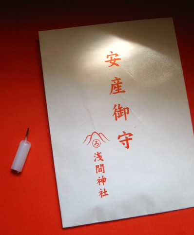 「胎内くぐり」は、生まれ変わるという儀礼です。新しい生を受け、リスタートするってわけです。と同時に、女でも男でも出産する概念があります。面白いですね〜。 「父の胎内」があったり、「邇邇芸命 ニニギノミコト」が祀られていることも興味深い。(ニニギノミコトはコノハナの夫です) 狭い溶岩の隙間を産道に見立て、「産まれようとする意志」と「産もうとする尊厳」を味わう。この両義牲が胎内くぐりの特徴かと思います。人間は、常に何かを作り生み出しています。生きていく上で起こりうる、たくさんの困難をうまく回避できるよう、ここを通ることは全ての人に対して御利益となるのではないか。 木花咲耶姫が「火中出産」した伝説から発生した「安産の御利益」ですが、それを広義に解釈することが富士山信仰のよきところ。私はそんなふうに思っています。 胎内は「無戸室浅間神社」でもあります。木花咲耶姫が、出産のために石室を閉ざして火を放ったことに由来します。安産祈願のお守りに売られていました。 かつては、胎内くぐりをする行者相手に、膝わらじや白いタスキを売る者がいたり、胎内くぐりを終えた行者に産(うぶ)湯と称して足を洗う水や、祝いの酒をふるまう人がいたそうです。 タスキは、後で妊婦の腹帯にもなるとして、安産土産になりました。また、洞窟内で使われて短くなった蝋燭もお守りになったそうです。こちらは、妊婦が産気づいた時に灯されるもので、残りの蝋燭が消えるまでにお産が容易にできる、という願かけです。 なんと、この蝋燭の安産御守、今でも伝統として頒布するところあり。 数日前、私もある富士塚のお祭りでいただいてまいりました。 それは、次の日記にて。