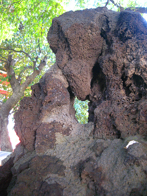 この富士塚はフシギです。 正面からは「拝する」塚。背面からは「登る」塚。 頂上にたどり着くのも背面からなのです。よく見ないとわからない。 ちゃんとお中道もあります。 そして、登山口は背面だけで3本あったかな。とっても小さい塚なのに。 江戸川区の今井富士、足立区の大川富士のように、トリックがいっぱいです。 登ると思うと下りになったり、中道や他の道とつながったり。 頂上もちゃんと立てます。 画像ではわかりにくいので、後日イラストにしたしましょう。 その他のポイントは、富士山型の自然石。全く文字のないところが◎。 比較的新しい富士塚や、改築された富士塚は、セメントを駆使してこんなことも。 補強のために、ワイヤーの芯を入れてある場合もあるのです。 浦安三社祭りの舞台、3神社に、ひとつずつ富士塚があるのも地元の自慢。 だけど、南にあるふたつは、江戸川区の富士講と関わりがあり、 北のひとつ、つまり当代島富士だけ、江東区や行徳、船橋の富士講とつながっています。 伝わったルートがちょっと違うのです。 あ〜面白い富士塚は♪ だから面白い本書いています♪ それは富士山への感謝のシルシ。何かを得たら、何かを生まなきゃ♪ もうすぐ新しい年ですね。今年もお世話になりました。 どなた様もいい年になりますよう、お祈りしております。 さあ、初富士はどこで拝みましょうか♪