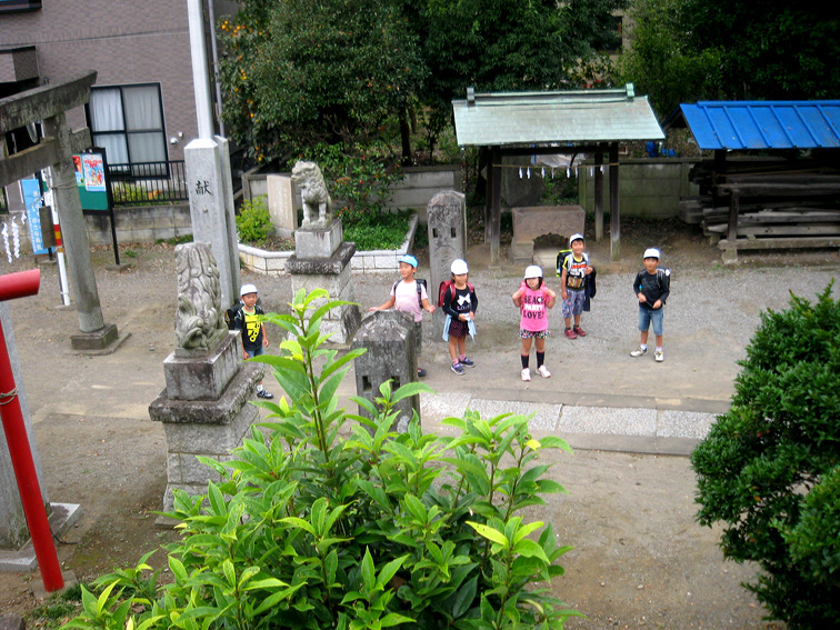 斜面から撮りたかったのは、このモンキーズ。 横から見ると、目つきが悪そうですが、 こんなにつぶらな目をしています。 頂上の奥宮の前で、登拝者を迎えます。 通常、猿がいるのは塚の麓ですが、川越の富士塚ではこの位置にいるのをたびたび見かけます。 私が塚の上でうろうろしていると、子供たちの声が聞こえました。 もう下校の頃です。 「何してるの〜?」 「ここに猿がいるの。ほら。私はその写真撮ってるの」 「あ、ホントだ、猿だ! 知らなかった!!」 塚に近寄って見上げていた子らは、登って来る様子はない。 オトナたちから、登っちゃいけませんと言われているのでしょう。 最近のキッズはお行儀がいいです。 そして、神社境内に自転車で乗りつけた仲間を見つけると、 猿のことなど忘れて、皆仲良く行ってしまいました。 つづく。。。