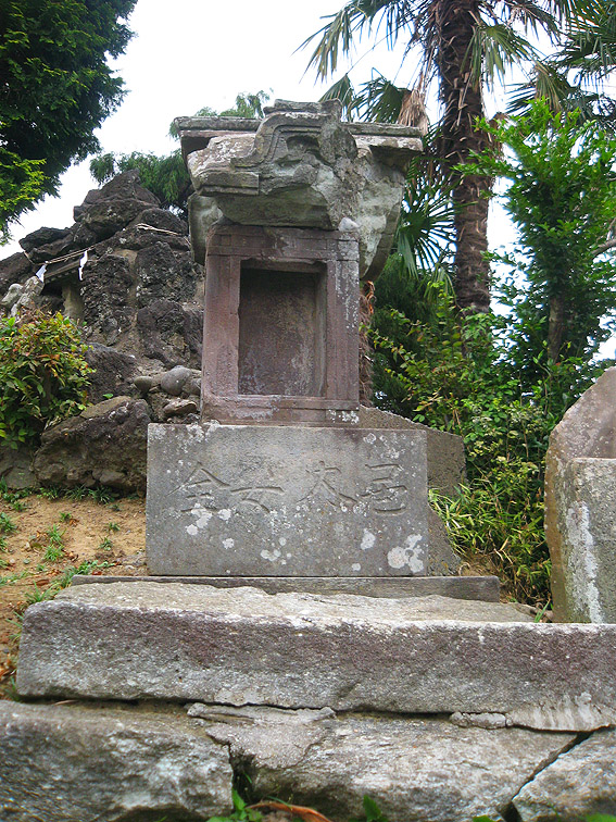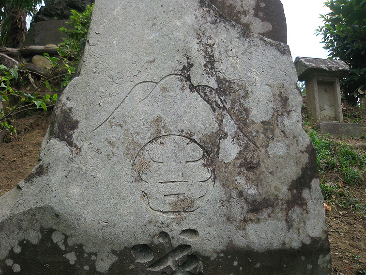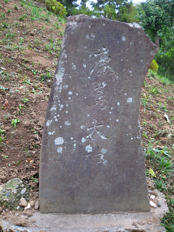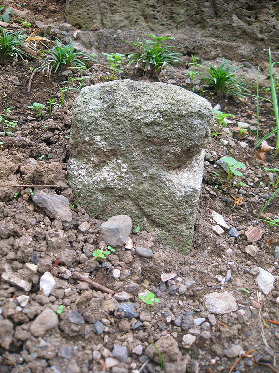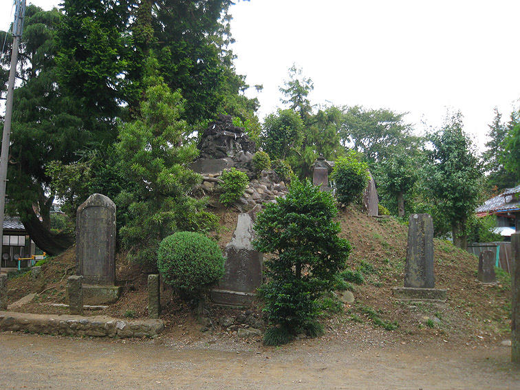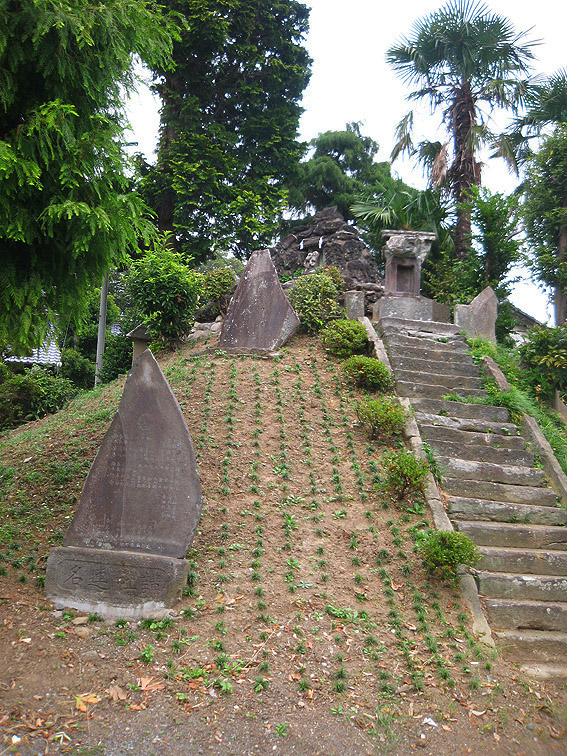 さて、この豊田本富士。 猿のいる頂上が特徴的ですが、斜面はいくつかナゾのまま。 奥宮と赤い鳥居は、富士山の方角を向いて一致していますが、 直線の石段(登山道)は右側にあり、真南を向いています。 登りきると金比羅神社の社。 奥宮に行くには、そこをすり抜けて左奥に進みます。 石段の右斜面には、磐長姫神社。 コミタケの代わりと言っていいでしょうか。祭神は同じコノハナの姉だから。 一方、左側には、 角行&食行の石碑。 そして、その下方にあるのは、 鹿島大神。と手前に合目石。 とろけたみたいだけど、七合目でしょうか。 時計回りに少し歩くと、 阿夫利神社つまり大山の神様。手前には、 数字がわからないけど、合という字があるから合目石。 何となく、土のかぶせ方が新しい気がします。 最後に、 位置的にこれもナゾな浅間大神。ヤマキチ講の紋もリッパです。 ちなみに、石碑のレイアウトは下のとおり。 浅間大神碑(先端が白い三角碑)の裏にも細い道がありました。 しかしこの塚の土は崩れやすい。きっと何度も造り直しているでしょう。 その度に何かが埋まったり、逆に出土したり。。。残りの合目石も絶対土の中だ! 頭上がうるさいと思ったら、 ヘリでした。羽根が止まったように撮れたせいで、なんか虫っぽいな〜。 白髭神社をあとにすることにしました。 北に行くと、もうひとつ富士塚があるはずので。。。 Facebook あり〼