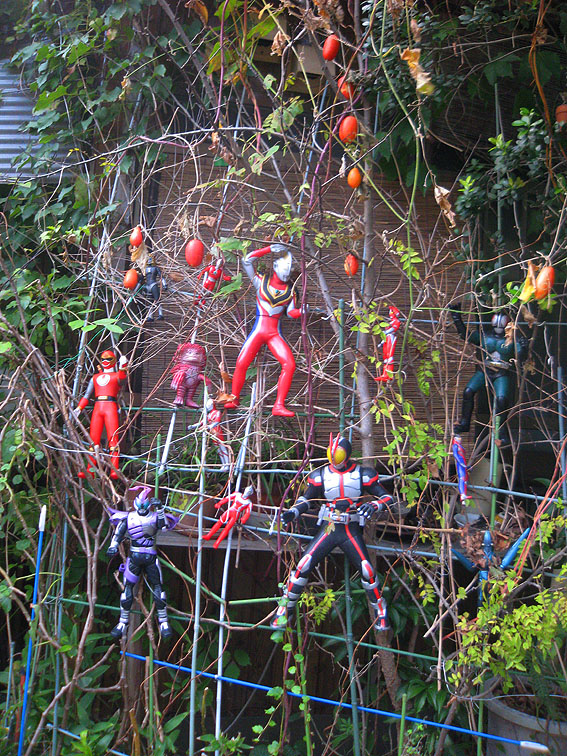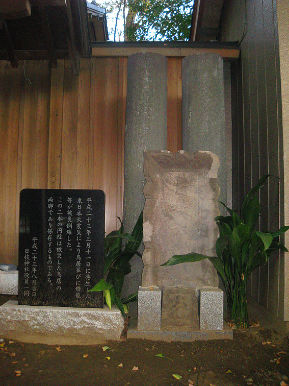 路傍の国分富士の上(高台)を歩くとすぐに下総国分寺がありましたが、 いきなり隣接のお宅に仰天! ウルトラマンや仮面ライダー、中にはピグモンも♪ 鮮やかな赤い実(何でしょう?)も妙にいい演出となり。 家も多くの守護神たちに囲まれていました。 「いやぁ〜、孫が持って来ちゃうんですよ」 優しそうなおじいさんに撮影許可をいただきました。あ、先を急がねば。 このあたりは、史跡めぐりのサインも充実しています。色が控えめで◎。 宝珠院のコーナーを右折すると、なだらかな下り坂が長く続いていました。 台地はさほど大きくはないようだ。 坂の途中を左折し、ほどなく日枝神社の杜。いいたたずまいです。 大正4歳8月6日とある。村社になったのは。 鳥居がやけに新しいなと思ったら、 そういうことだったのですか。古い柱と扁額が印象的でした。 私好みの社殿です。古い。どことなくお寺のようでもあり。 つづく。。。 Facebook あり〼