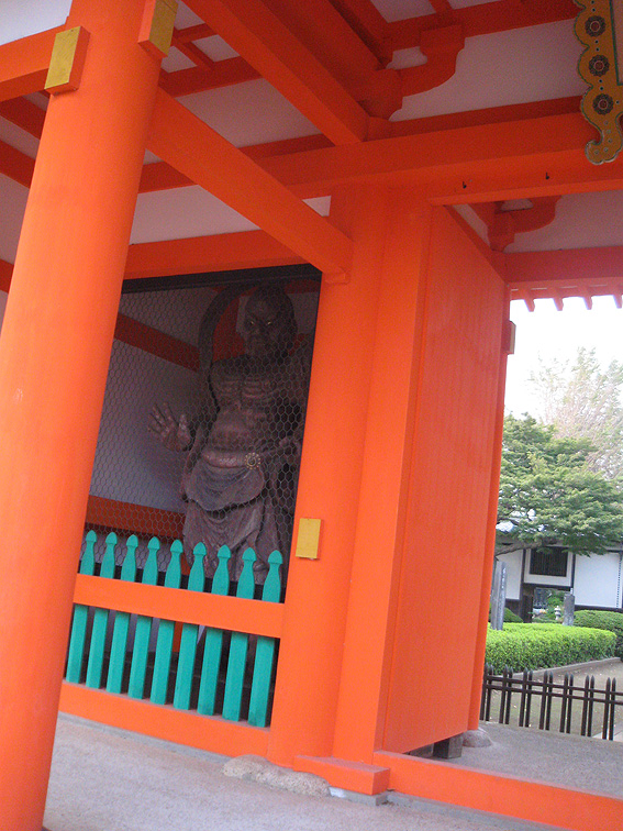 巨大錫杖があったのは、下総国分寺(跡地)です。 奈良時代、全国に建立された国分寺ですが、下総国分寺はその跡地しかありません。 国府台(こうのだい)という台地に建っています。 東京と千葉を分断する江戸川から見ると、かなりの高さがあります。 江戸名所図会にも、下総国分寺が描かれています。 画面の右下、赤い矢印をつけてみました。 (位置は違いますが)巨大錫杖は江戸時代からあったのですね。 杖の部分に「明暦」と刻まれてあったので納得。実際はこの倍くらいありますが。 そして、左下には、「二王門」つまり「仁王門」が描かれています。 私は子供の頃、思い切り仁王像に睨みつけられた記憶があります。 そのせいか今も何だかビビリます。だのになぜか信頼感を覚える仁王さん。 本堂を背にして仁王門を振り返ると、空が晴れていました。 向かって右側が西。富士山の方から西日が少しずつ空の色を変え始めます。 私はここでゆっくり夕暮れを迎えたかったのでした。 「浄土」。。。 私は思わずそうつぶやいていました。 仏が住まう西方浄土。。。 仏教が日本に入って来て以来、西という方角には特別な印象があったでしょう。 そして、関東人が西を向くと、富士山が目に入った。仏の住む富士山が。 そんな状況を鑑みると、この国府台の南端と東端に富士塚が造られたのも 不思議なこととは思えないのです。 Facebook あり〼