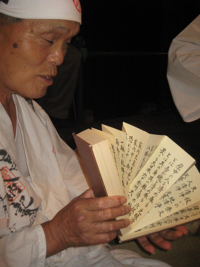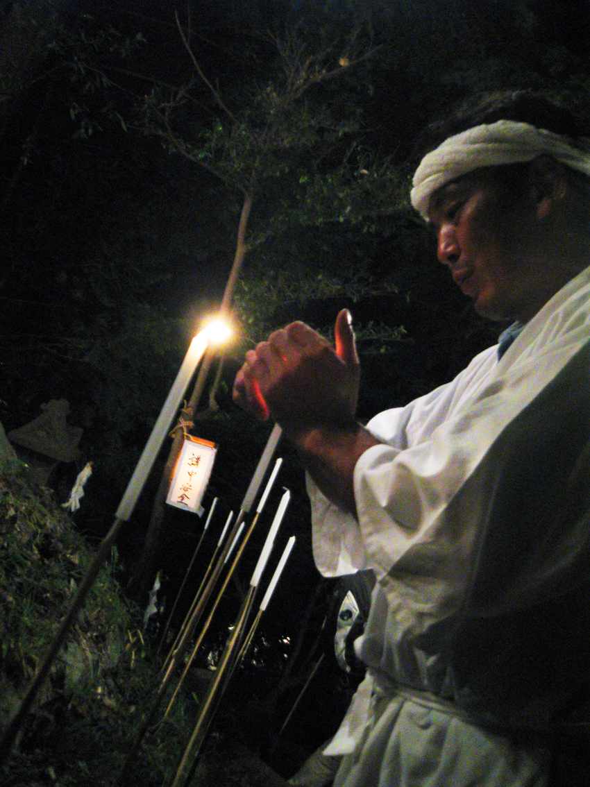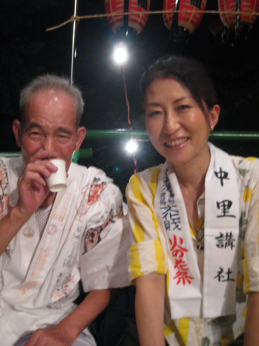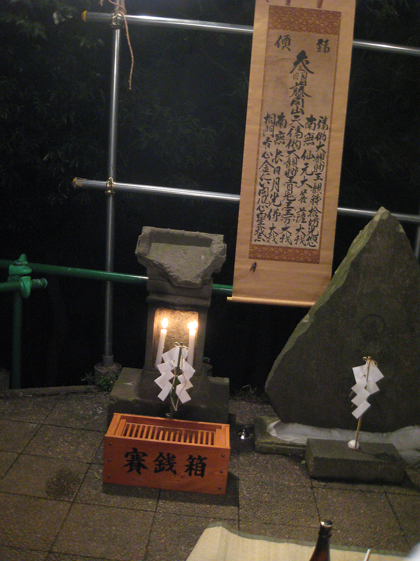 中里富士の頂上にて、しばらく御神酒をいただきながら談笑の時間です。 登拝される地元の方々に御神酒をふるまうのは、 奥に見えるのが、 ゴゼンサマ(御神語が書かれた掛け軸)と大日如来碑、奥宮の祠です。 最近、手品の腕を上げたO俣さんが、 「これね〜、『お伝え』なんだけど、こんなこともできる♪」 「えー!早いっすよ」 (Oさんのお兄様は、2代前の先達でした) そうこうしてうちに、富士塚の麓が騒がしくなってきました。 ふと下を覗き込むと、 「人がどんどん集まって来ましたよー。あ!ロウソクの火が消えてる!」 「風が強くて消えちゃったよ〜!」 つづく。。。 Facebook あり〼