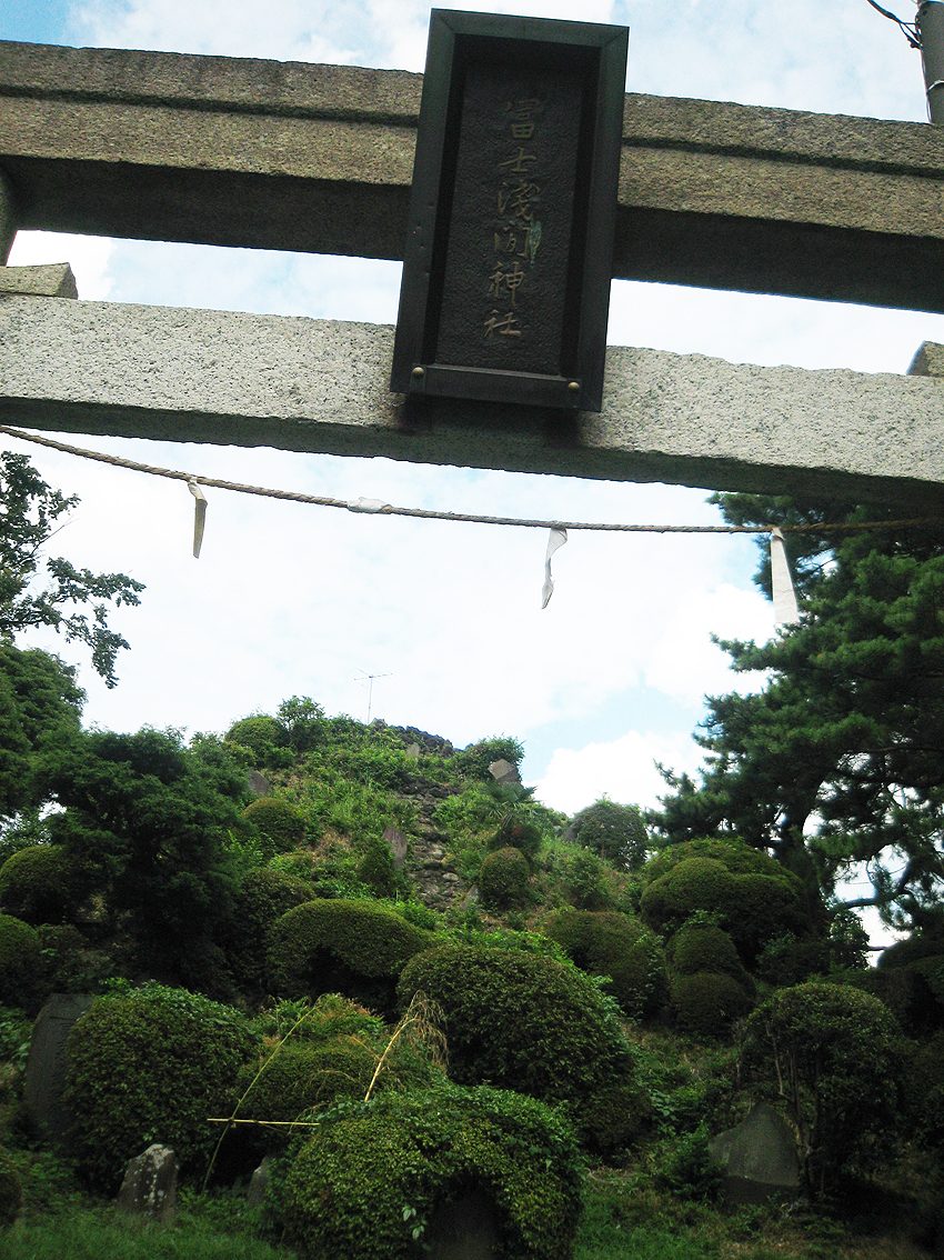 9月1日に清瀬市の火の花祭りに行ったら、翌日には大泉富士にいることが多い。 巨大な塚を見上げ、思わず深呼吸をしたりする。 正面の麓にある笹竹は、 8月1日のお山開きで御三幅(ごさんぷく)を吊り下げるために設置したもの。 →当日はこうして掲げて拝みます。 笹竹は、簡易鳥居のようでもあります。つまり、その向こう側が神域ということ。 今回は、正面から登らずに、違うトレイルを行ってみます。 塚の左側からはじまる、中腹まで一直線の白い道。近年見つけた「須走口」です。 中腹から見下ろしたところ。登りやすそうだけど、結構な勾配で、 よろけるとたちまち滑落しそう。そんなスリルも悪くない。 この大泉富士は、私が富士塚と認識する前からよく登っていたお富士さん。 おそらく100回は登っている、まさにご近所富士であります。 それでも、訪れるたびに新発見があるというもの。 前回の発見はこの須走トレイルでしたが、今回もすごかった。 つづく。。。 Facebook あり〼