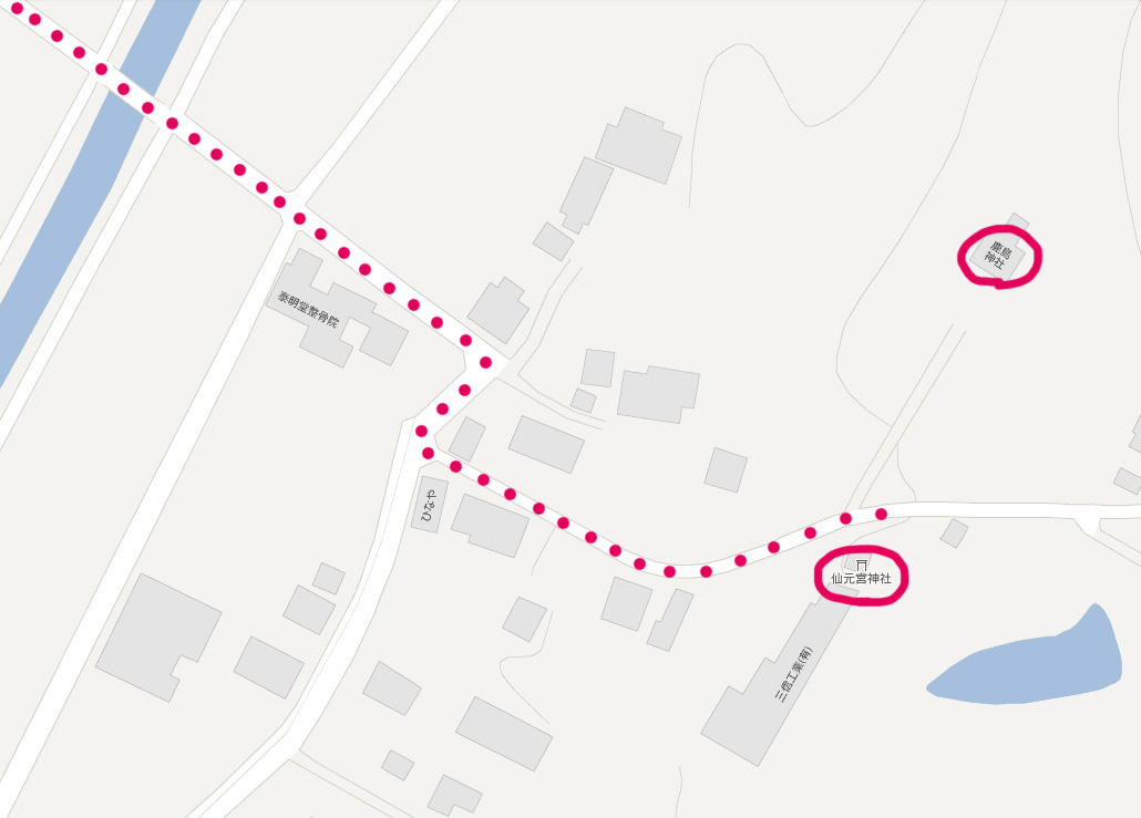 神社までの道のりを地図で見ると