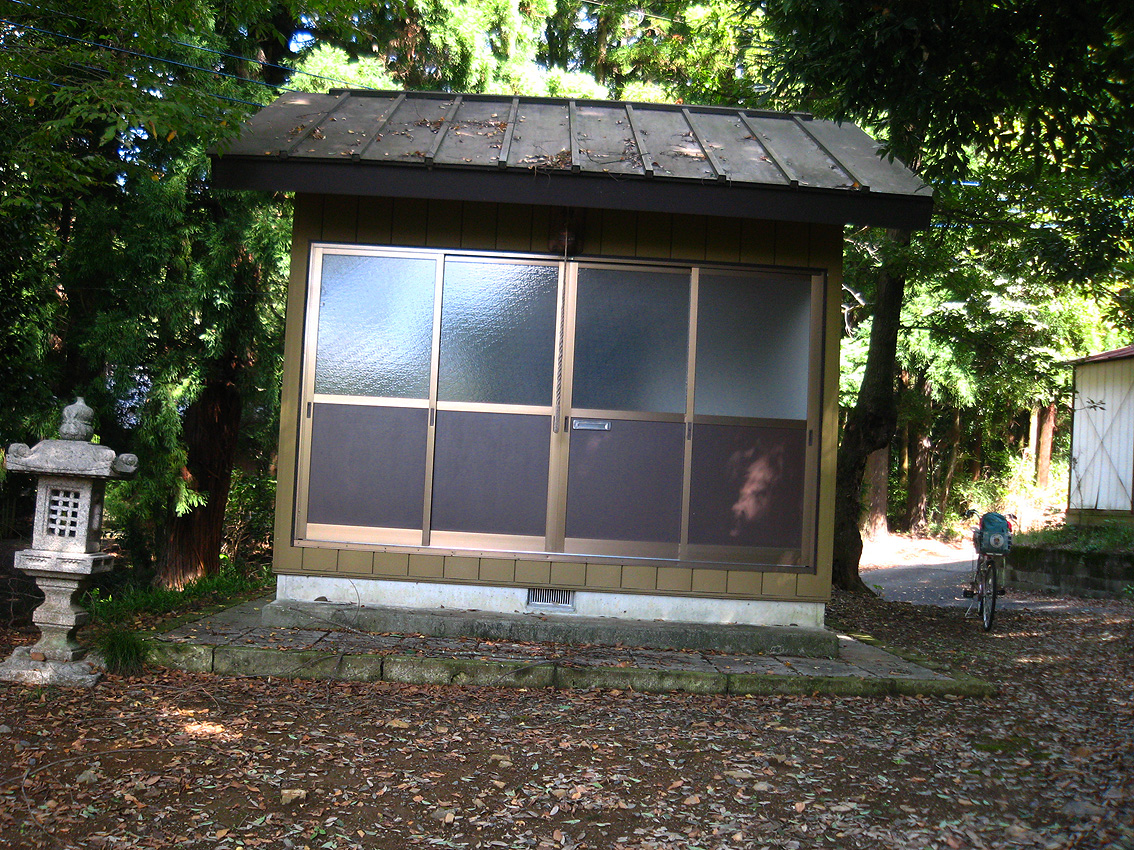 ↓点線の道のりを歩きました。 4年前に歩いた道は、確かにここでした。 しばらく行くと、 左手にこのあたりの村社である鹿島神社があります。 ゆるやかに登って来た道を、振り返ると こんな光景。右側に鹿島神社。前方遠くには小さな山々。 左の暗い(黒い)塊が、 小さなプレハブ。ここが、 東耕地の仙元宮神社です。 訪れた時は、赤富士御影は、足利市立美術館に展示されていたので不在でしたが、 今頃はこうしてお宮に納まっていることでしょう。 傍らの水盤には、 西耕地の水盤に刻まれた紋と同じものがありました。 さあて。ここがなぜ、富士山信仰に大事な場所か。 それは、赤富士御影の存在だけではないのです。 つづく。。。 Facebook あり〼