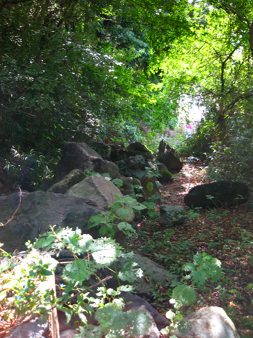 社から上は、道はありません。 右下の池の脇から登れそうな感じはありましたが、 どうやらそこにも道らしきものはなく。。。 もう一度MAPを見てみます。 一旦車道に下りて来てから、すぐ脇の登山道をチェックします。 自転車を止めて、蛇行する道に入ると。。。 え?この巨岩は??? ひとつやふたつどころではありません。 長さ1〜2mもの大きな岩が、登山道に並べられています。 これはいったい。。。 自然石ではあるけれど、どう考えても山の上から転がってきた とは考えにくい。道を阻むような置かれ方です。 とはいえ、人為的にも運べなさそうな(かなりの勾配でもある) このおびただしい巨岩群はいったい何? 誰がここに置いたのか??? ナゾです。 登って来た道を振り返る。 自転車が下に見えます。 まだそれほど登って来ていないのになあ。 山の上には奥宮があるらしいので、確かめたい。 先を行きたいなあ。 それにしても、これは何の意味があるのだろう。 行くなということか。 どうしよう。巨岩を間をぬって上に進むべきか? 一つ目の折り返しの手前から上を眺めました。 先の登山道が見えた。どうやら上にも巨岩はありそう。 しばらく悩んだ挙げ句、 今回は先に進むことをやめました。(またトライすればよい) 通常のスタンスは 好奇心>多少の困難 でよいのですが、 現場で少しでも何かに妨げられている感じを受けたときは、 知りたい欲求<土地と自分の縁に従う を守ること。 これができなければ、聖地を訪れないほうがいいでしょう。 今回、特別イヤな感じは受けなかったけれど、 奥宮との波長が合わなかったと判断するのは正しいです。 道を引き返すことにしました。(目的地もあとふたつ) つづく。。。 Facebook あり〼