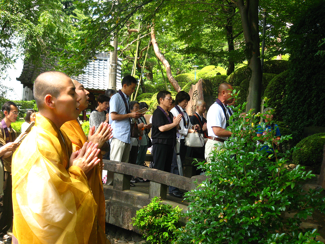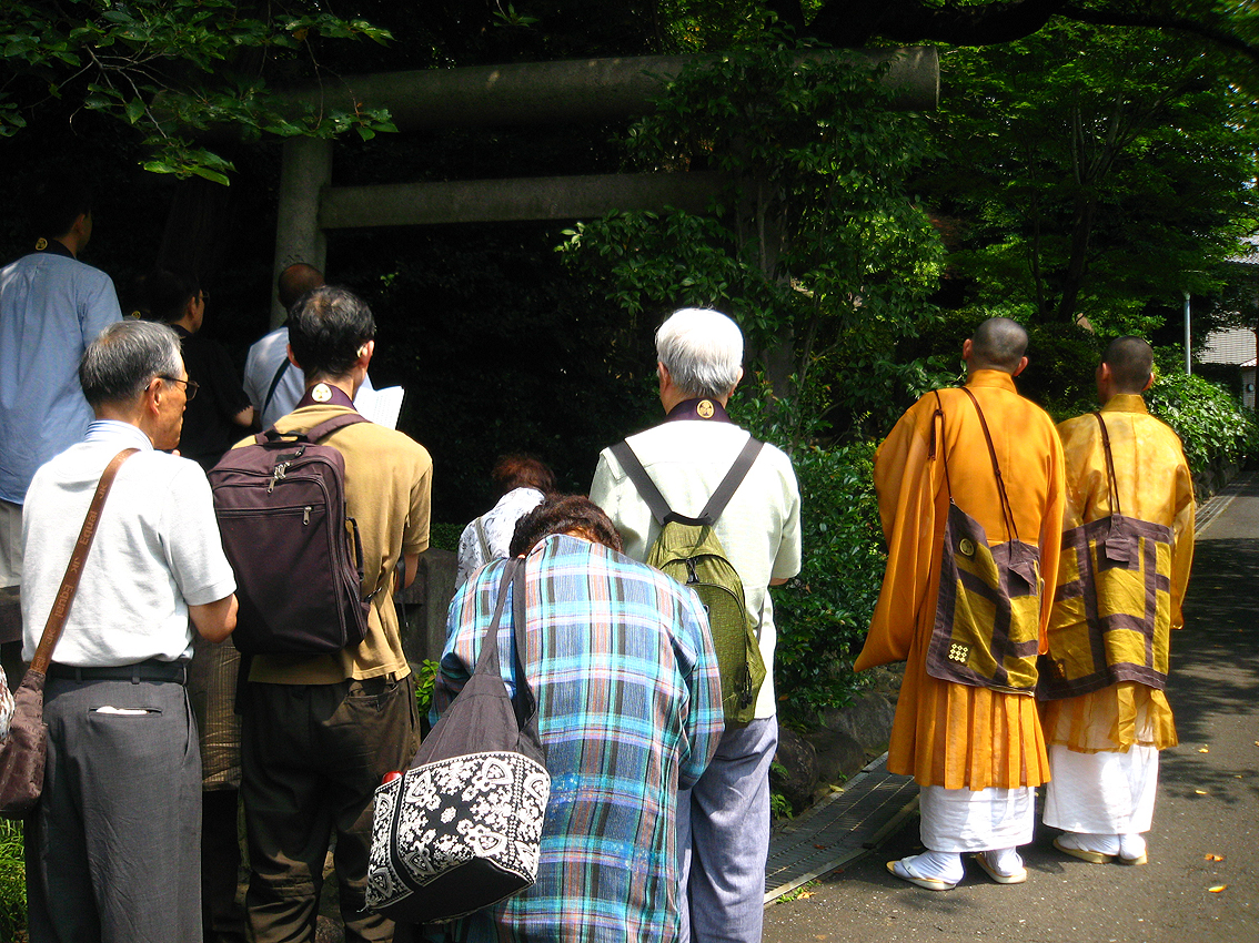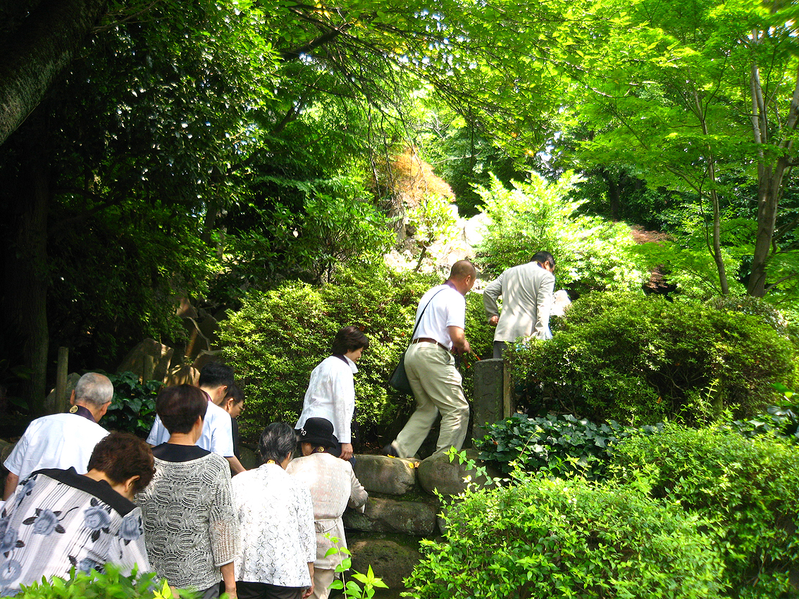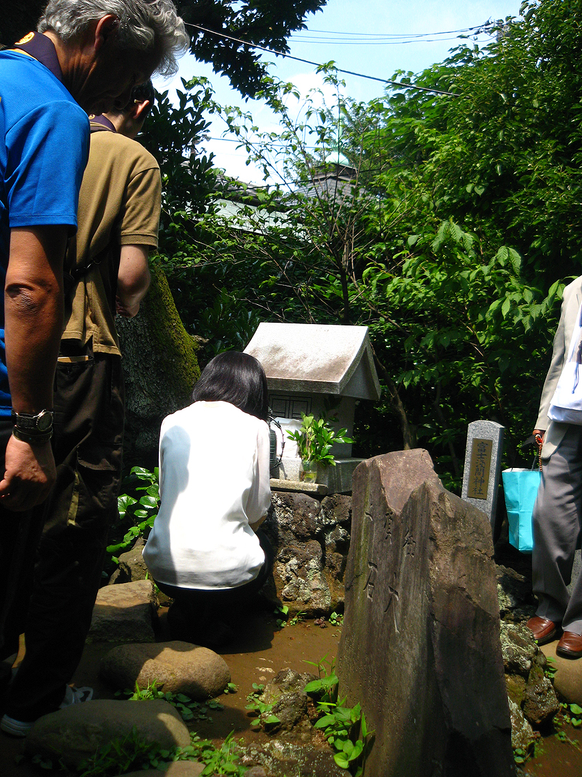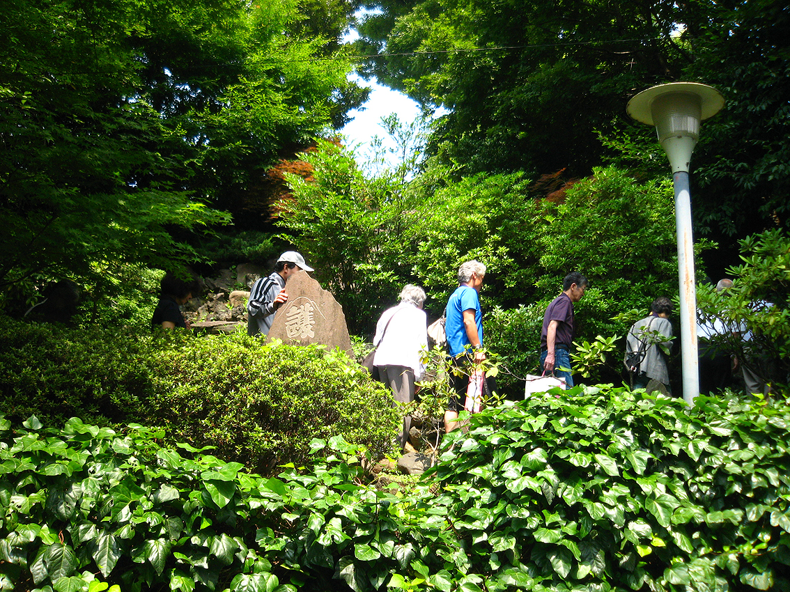 7月1日及び前後は、ご存知のように富士山のお山開きに合わせて、 各地の富士塚でもお山開きがありました。 今年は富士山の世界文化遺産登録の影響で、富士塚への関心もアップ。 子供時代に富士塚に親しんだ人は、地元に戻って懐かしみ、 最近富士塚を知った人は、富士塚巡りを楽しんだようです。 お富士さんの祭として人出の多い駒込富士や十条富士は、 このブログで何度も紹介しているので、今回はお初のレポートです。 (6月1日の横浜7富士参りの様子は、後日じっくりと書くとして) 東京でお寺にある富士塚はひとつ。文京区の護国寺の音羽富士です。 山護講の解散で、山開きは久しく行われていなかったのですが、 3年前から復活したのをご存知ですか? といっても、お山開きをするのは富士講ではなく観音講で、 御前様と慕われる大本山護国寺第五十三世貫首 岡本永司大僧正の法話を、 毎週日曜日に聞く集まり(観世音菩薩を信仰している)「修養会」の 方達です。 7月1日に近い日曜日、本堂で法話を聞いた後に音羽富士に登拝する という情報を得、6月30日に参りました。 10時頃、講の皆様が富士山の麓に到着。若い僧侶が出迎えました。 総勢30名。ご年配もいれば若い人もいます。 皆さんが、鳥居の手前に立ち、音羽富士に向かって深く一礼。 そして「神様だからね」と言いながら、祝詞奏上を終えた後、 たっぷりお経を上げられました。 そして、鳥居をくぐって登拝です。 法螺貝の響きが心地よい。 「道がいっぱいあるなぁ」「右側から登りますよ〜」 先頭集団はすでに頂上に立ってます。 頂上手前はこんな渋滞。とはいえ、全員が頂上に乗れたなんて! ひとりずつ丁寧に拝みます。 「今だけ、こちらならではのものを置いてあるんですけど」 と僧侶。 そこには鐘が吊るされてありました。 各参拝者は、ひとつ鳴らしてから拝みました。 「お社に鐘ってヘンでしょうが」と僧侶はおっしゃるのですが、 「いえいえ、高田富士では鐘を鳴らしますし(叩き鉦ですが)」 かつて富士山の頂上では、 ほら、このとおり。 (江戸時代の「富士山明細図」を立体に模写したもの) 下山後、観音講の方と談笑するうちにお父様が富士講だったと いう方とお話ができ、とても貴重な時間を過ごせました。 この日のことを教えてくださったMさんに感謝です。 「富士塚はもともと境内の西側にあったそうですよ」と私。 「確かにあっちのほうが見晴らしがよくて富士山が見えそうです」 「わー見たい見たい!」 Mさんに案内された一角は(茶室横)、確かに高い。 そうか、首都高側が崖になっているのか。ふむふむ。 富士山はここからきっと見えたでしょうね。 そして富士塚の元位置もここあたりかも? 江戸名所図会に描かれた音羽富士です。 Facebook あり〼