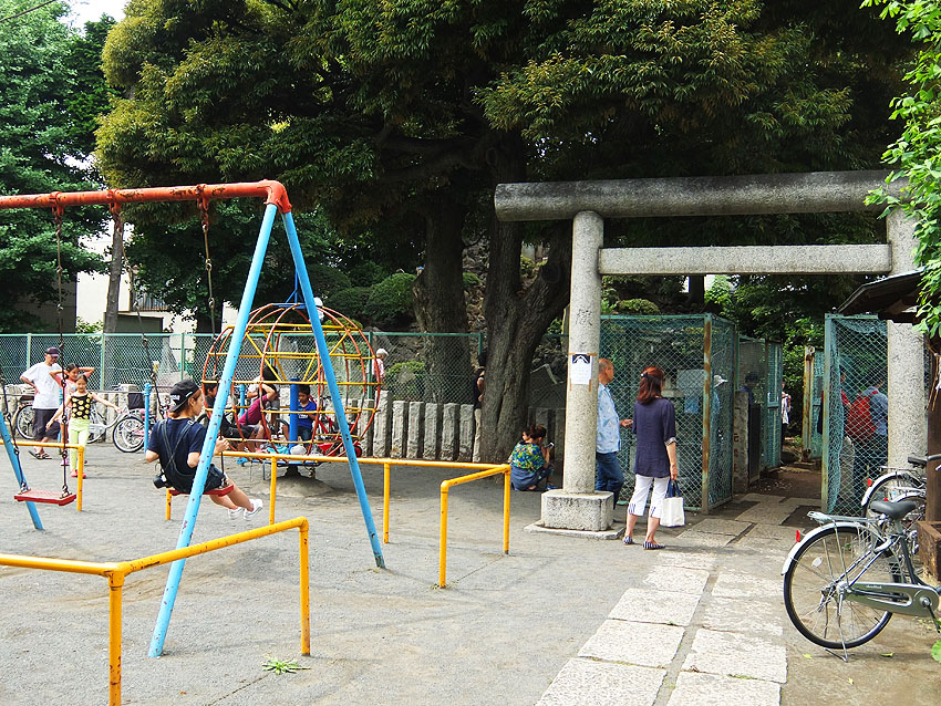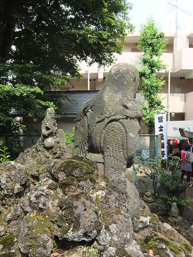 7月5日と6日に、一般登拝が叶いましたのは、 豊島区高松の高松富士(長崎富士とも言います)。 4基ある国指定重要有形民俗文化財の富士塚のうち、今まで、 ●高松富士:年間立ち入り禁止 ●木曽呂富士:常時登拝可能 ●江古田富士:年3回(正月3が日と7月1日と秋の例大祭の2日間) ●下谷坂本富士:年2日(6月30日と7月1日) でしたので、今回の高松富士の公開は快挙です。だって、ほぼ半世紀ぶり! 塚の入口は公園の東側。フェンスの扉が開いています。 まず、浅間神社にお参り。月三講の額が掲げられていました。 講名は講祖である三平信忠の「三」を取ってつけられたそうです。 フェンスの中に入り、塚に一歩近づいただけで空気が一変しました。 久しぶりに感じた清涼感でした。 そしてすぐに目が合った。 烏天狗と 大天狗に。 小御嶽神社への案内人、大小天狗に「のちほど!」と声をかけていると、 子供たちがすばしっこく登山道を駆け上がって行きました。 烏天狗の横を通って、私も登拝することに。 登山道は、平坦なところもあるけど 8合目あたりから急に傾斜をつけてあります。富士山特有のカーブを表すためでしょう。 日御子碑も見えます。 頂上でゲームに勤しむ、今どきの子ら。 祠の中には11代目の先達、本橋源蔵が納めた大日如来像が。 塚の前面を振り返ると、 登拝中の親子。このあたりは段差が大きいので、子供にはちょっとキツい。 でも、最後の数歩はこんな作りになっていて、安全です。 中腹で小御嶽をお参りする女性が見えました。 一旦下山し、 天狗のあたりから小御嶽道を行く。 さて、麓まで下山し前面を通ります。 高さ8m、径21mの高松富士は、月三講による築造(文久2年)と言われていますが、 これが文久2年と刻まれた講碑。 そのまま塚の西側を歩いて北西部。 親子が「小さなおうち」と呼んで中を覗き込んでいたのは 御胎内です。一枚岩で覆われているので、乗っても安全でした。 大型塚で麓を一周できるのは、そうそうないです!素晴らしい。 中道もくっきり。その先には天狗の後ろ姿! 表に回ると、 「ふうん。大天狗と烏天狗は大正6年に奉納されたんだって」 「私たち、天狗ににらまれてない?」 社殿前で、お囃子が始まりました。 最後に猿像。 池袋富士の猿に似て、対に見えますが、 右は鳥居の近くにいた猿(元々塚にいた)で、 左は地元住民の家にあったものを奉納とのこと。 とにかく、初めての高松富士登拝ができ、富士講と保存会の皆様に感謝です。 塚の構造から、こだわりカーブのつけ方、ダイナミックな登山道、 たっぷりのボク石、おびただしい数の講碑と石像物、そして塚一周できる点、 などなど、すべてが素晴らしいものでした。 また、子供や若い方たちが楽しそうに登っていましたが、 ご年配方が、感激しながら登拝されていたのが印象的でした。 「むかーし、登ったことはあるよ。公園は神社の境内だったからねぇ」 「あたしは初めてよ。50年くらいここに住んでいるのに」 「ああ、あんたはお嫁に来たからね」 フェンス越しに「私も登りたいよう」と言っている方もいました。 ★来年以降も登れることになっています。お楽しみに! (7月第1土日です。7月1日が日曜の場合は、6月30日から解放とのこと) Facebook あり〼