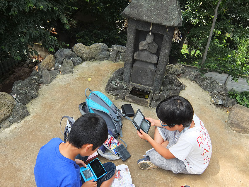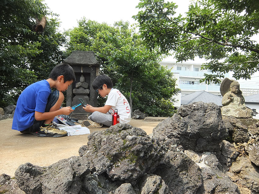 富士塚を中心に、昔から住んでいらした方たちが、 思い出話を交えてしみじみ語り合っていました。 皆さんの目には、懐かしい風景が見えていたのだと思います。 それが私にも伝わり、 一瞬、昔の風景と遠くの富士山が見えた気がしました。 いいひとときを共有させていただけて嬉しかったです。