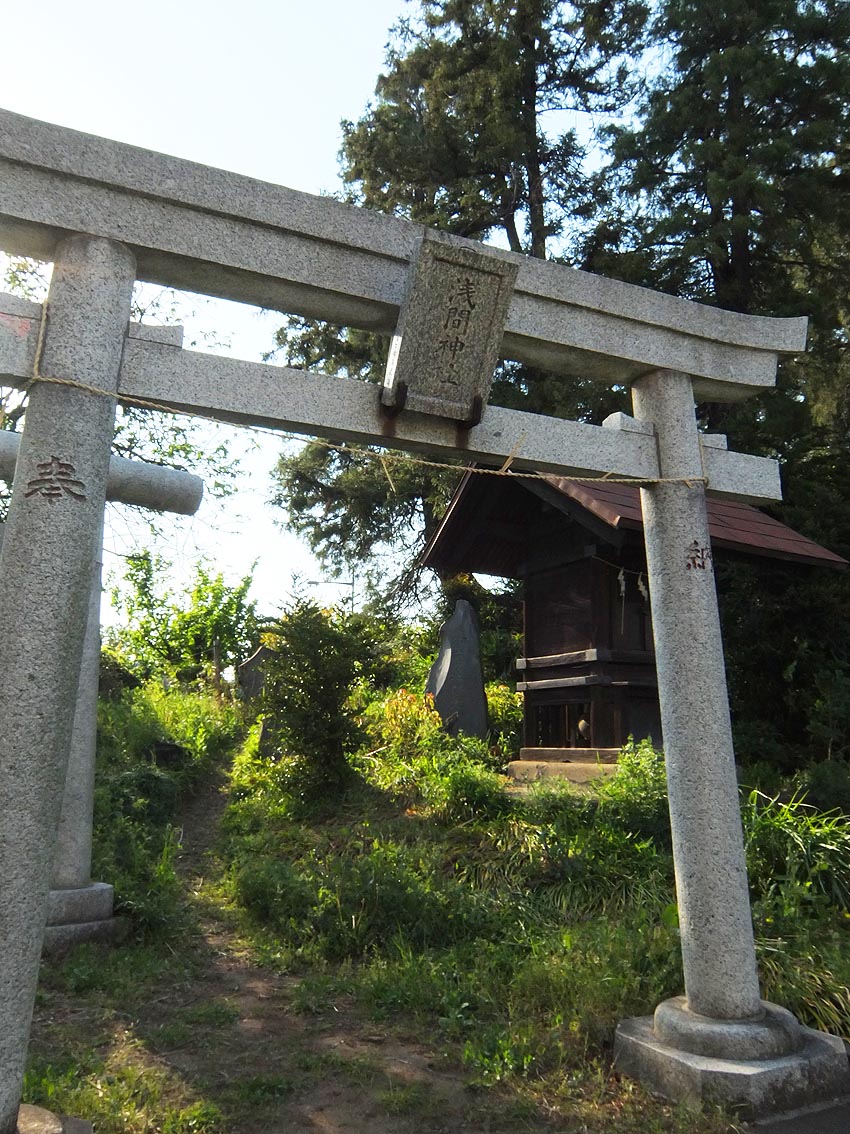 諏訪神社境内といえば、吉田の浅間神社も諏訪神社の一角(諏訪の森)に勧請されたものが富士講の興隆とともに発展したものなので、ここもなにか関係あるのでしょうか。 一合目の神社は大日堂跡で「天照大神社」だったと思いますよ。 もっとも、浅間大神の本地仏が大日如来との本地垂迹説でいえば同じ神様(仏様)ですけどね。