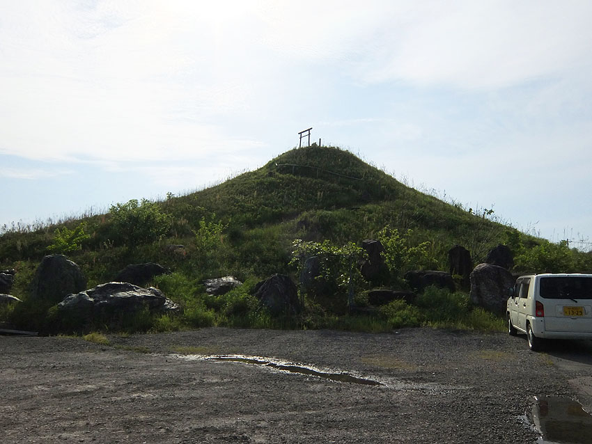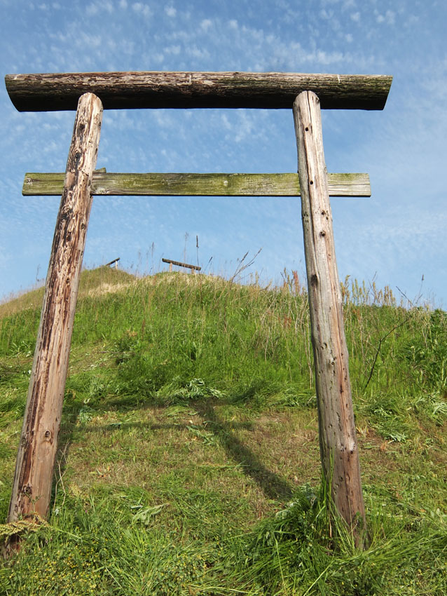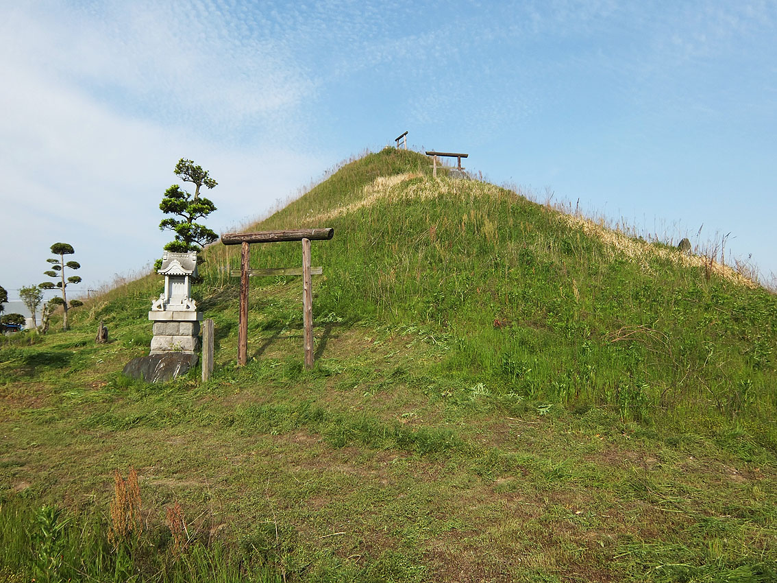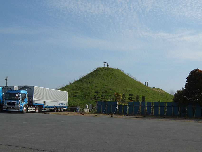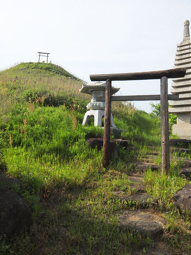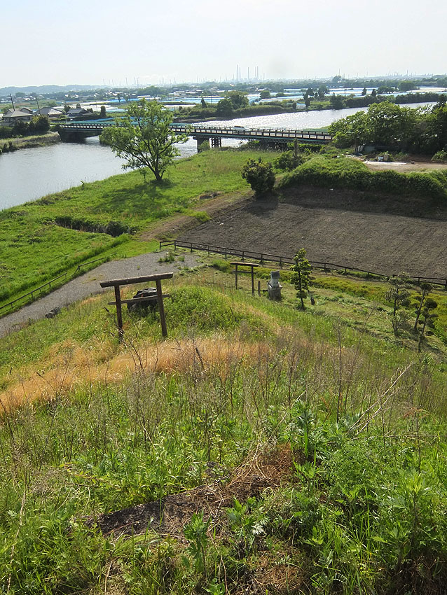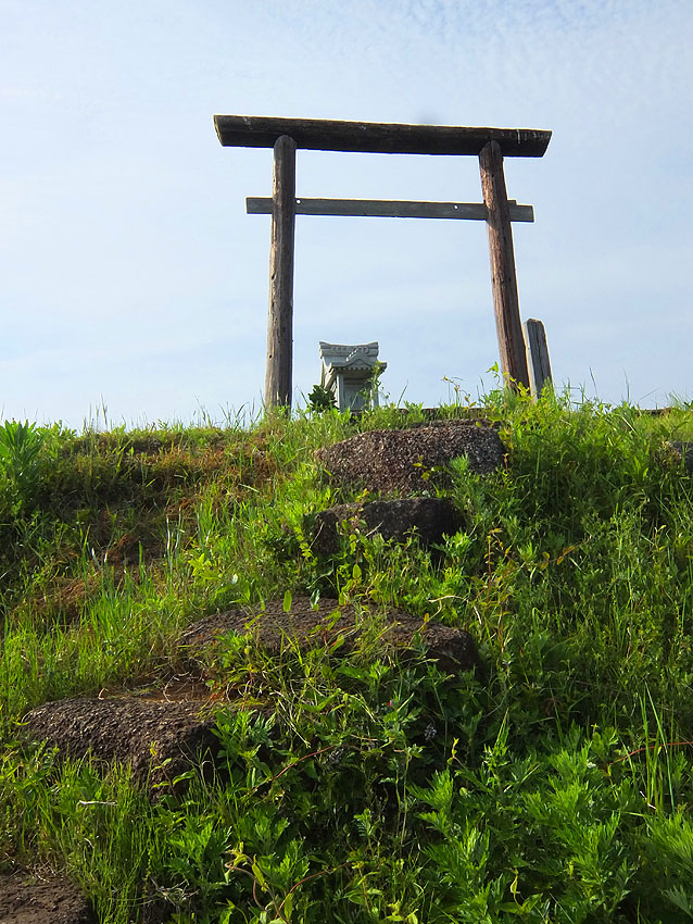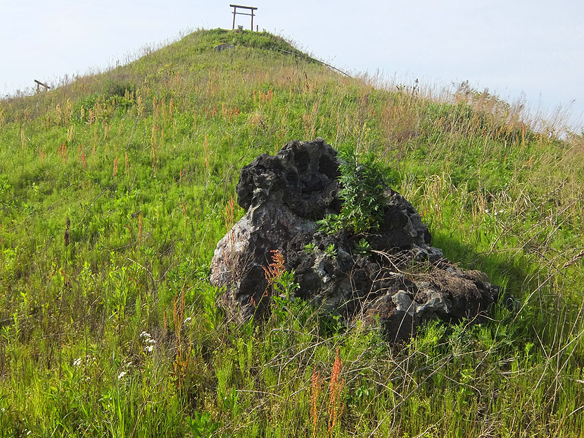千葉県市原市総社の総社富士から南西に約2km歩くと、 養老川沿いにフシギな山が現れます。 運送会社の敷地内に、高さ20mほどの草山。 見事なコニーデ型で、どう見ても富士山です。 近寄ってみると、ジグザグの登山道や鳥居が見えます。 麓には巨岩がゴロゴロあります。 通常の富士塚にはない巨大な石燈籠も。 地元の石材店が奉納したのかもしれない。 富士塚かどうか疑問を残しながら、 とにかく登ってみることにしました。 登山道には、これまた段差の大きい角石が使われていて、 やはり、業者が重機でこしらえたのかと思うほど。 烏帽子岩のような大きな岩があります。 眺望がだんだんよくなっていきます。 風が気持ちいい!養老川も光っている。 頂上には、社があります。 南西側を見下ろすと、 中腹に鳥居と大きな岩があります。小御嶽でしょうか。 頂上からは行けそうになかったので(滑落しそうだし)、あきらめました。 登った道を下山し、塚の南側を歩いていたら、 これまた巨大な溶岩が。 西側の麓近くにあったお社です。里宮としておきましょう。 鳥居は各所に4基です。登山口、頂上、中腹、そして麓。 ちょっとフシギな富士山でした。でも、眺めは抜群です。 天候がよければ、姉ヶ崎越しには富士山が見えるはず。 Facebook あり〼