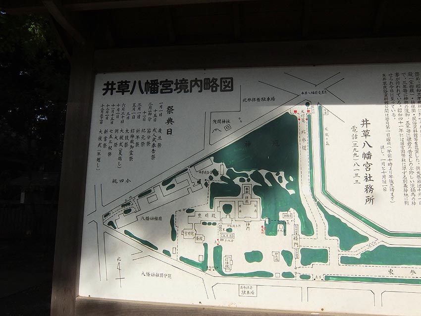 杉並区で唯一現存する富士塚、井草富士があります。 場所は井草八幡宮。 パワースポットとして評判高いこの神社は、 確かにとても清々しい! 空気が全く違います。 富士塚は、(道を挟んで)本殿のちょうど北側。 境内略図には、浅間神社の文字と鳥居&祠を示す四角形、 そして三峰のマークがあります。 井草富士は、草に覆われた円錐形でとてもシンプル。 東京には珍しいタイプです。(高さは2mくらい) 柵の中なので、寄って見ることはできませんが、 登山道や石碑も見当たらず、麓に丸石で土留めされている程度。一見お中道に見えるところや丸石の配置は、静岡の鈴川の富士塚を彷彿とさせます。 実はこの富士塚も移築組で、昭和50年に遷されたとのこと (境内の南側から)。 その際、塚に付属していた石像物は動かなかったのですね。 今でも社務所の近くには、立派な天狗像が彫り込まれた 小御嶽石尊大権現の碑が立っています。 東参道のところにも、立派な富士講燈籠があります。 (3年前に有形民俗文化財に指定されました) 刻まれた文字によると、杉並区のほかに練馬区や保谷や田無、 新宿や成子の富士講から寄進されたそうです。 石碑や燈籠の大きさから推測すると、 元の塚はかなり大きく、中道もつけられていたと思われます。 場所はおそらく、今の幼稚園あたりだったでしょう。 当時の姿がとても気になります。 Facebook あり〼