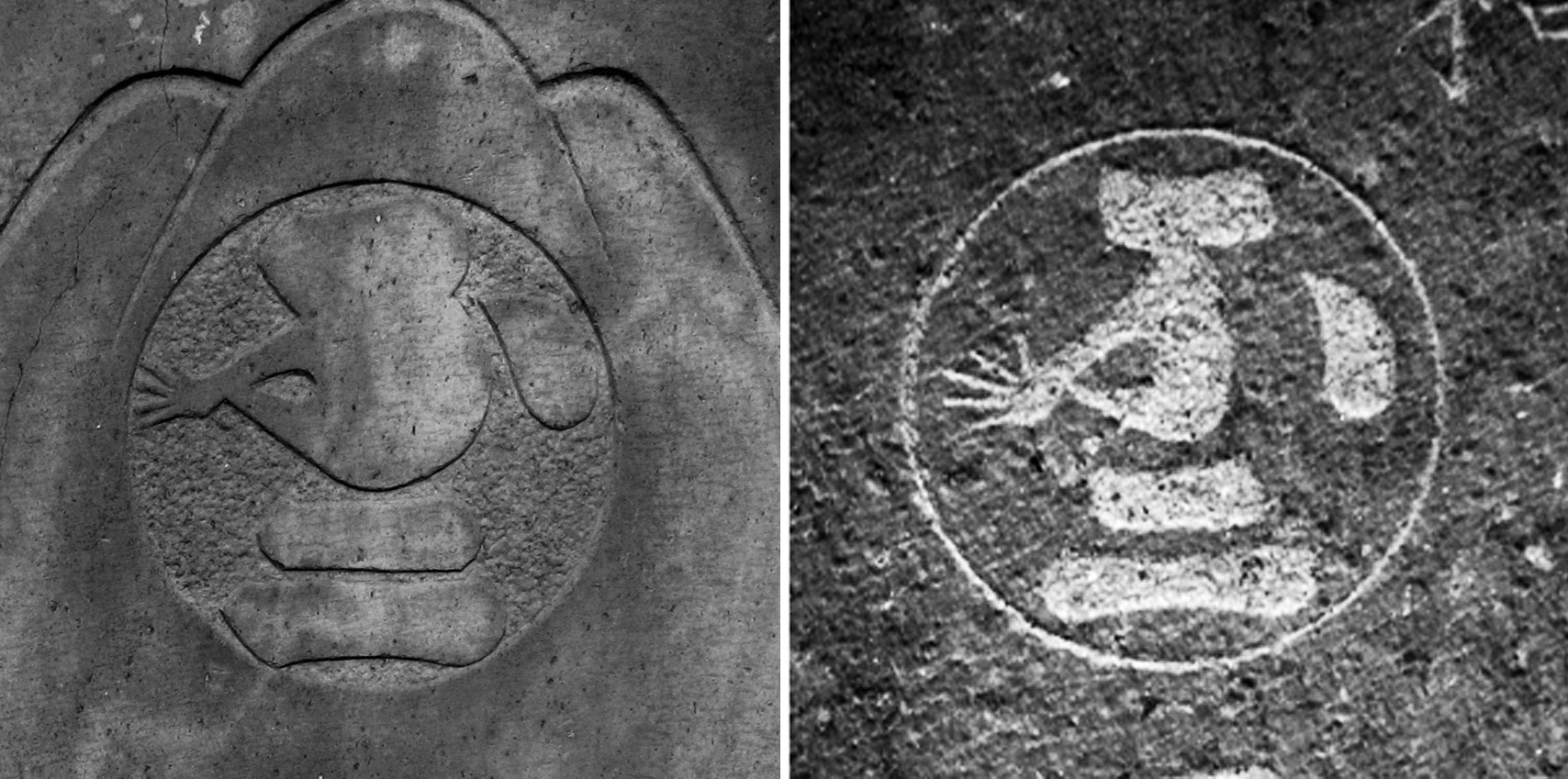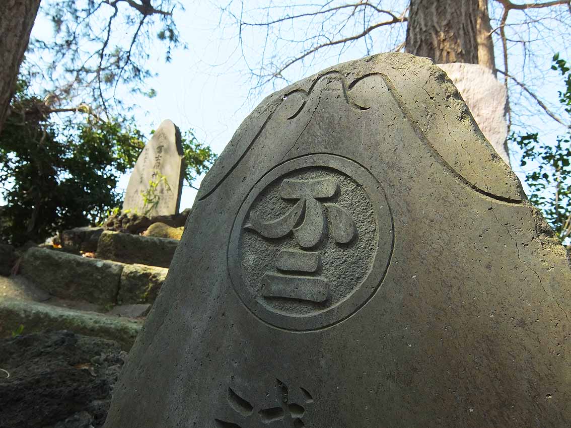 富士塚には、時折「隠れモンキー」がいます。 講紋の文字を猿に見立てて図案化したものです。 モンキーには何パターンかありますが、 江東区、千葉県市川市、船橋市、浦安市にある「不二講」の「不」の文字が顕著です。 モノクロ画像(左:江東区の亀戸富士、右:市川市の本行徳富士) にあるように、たいていは5本指ですが、 ここ、市川市鬼越にある「鬼越富士」には、5匹の猿がいるものの、 5本指はひとつもなかった。 指数:0(雲母を含む石のため、簡単に剝落したみたい) 指数:3(うっかり?) 指数:4(これもうっかり?) 指数:6(慎重になりすぎた?) 指数:6(まいっか) 小さいながらも、味わいある塚です。オススメ。 つづく。。。 Facebook あり〼
