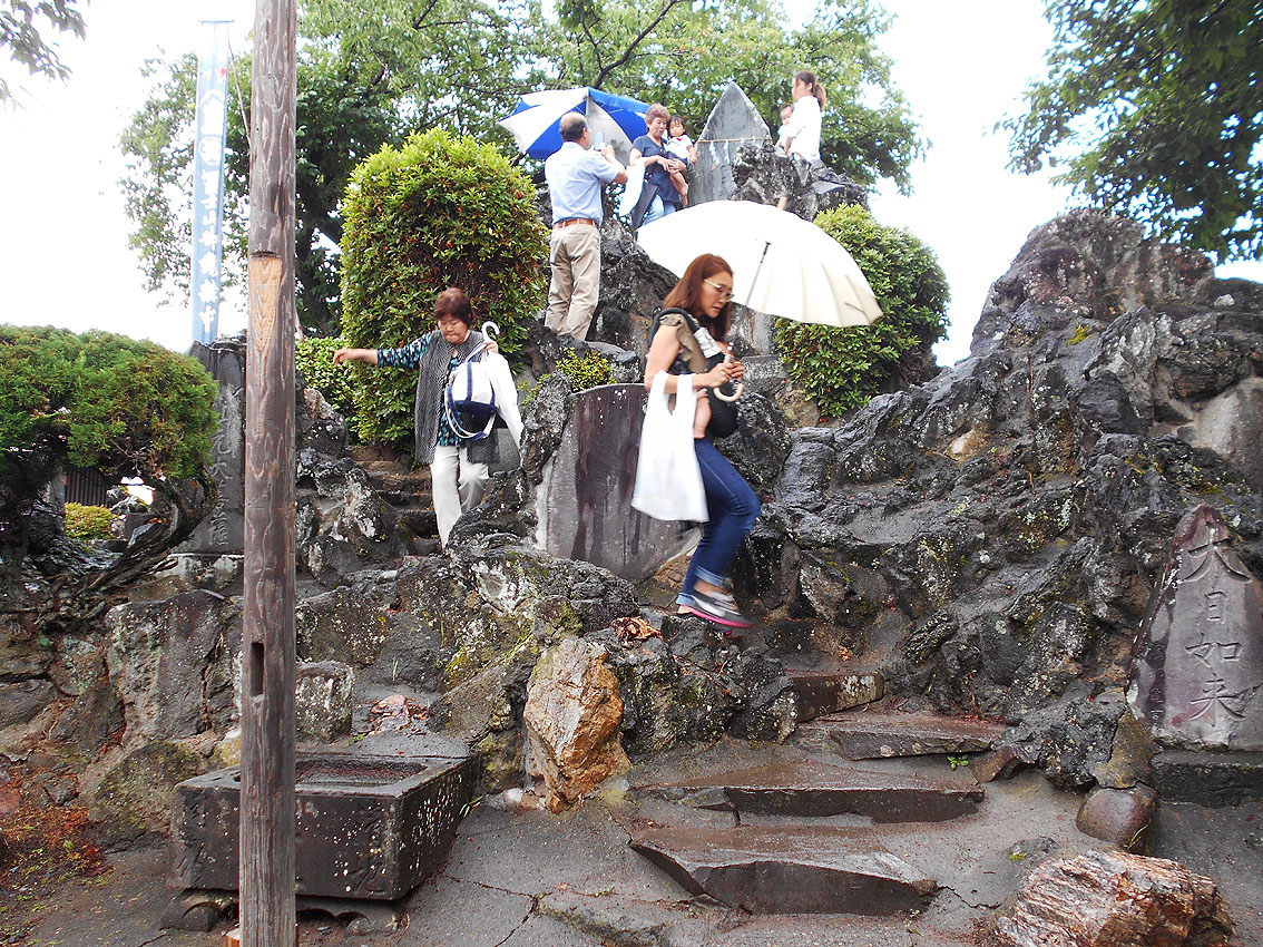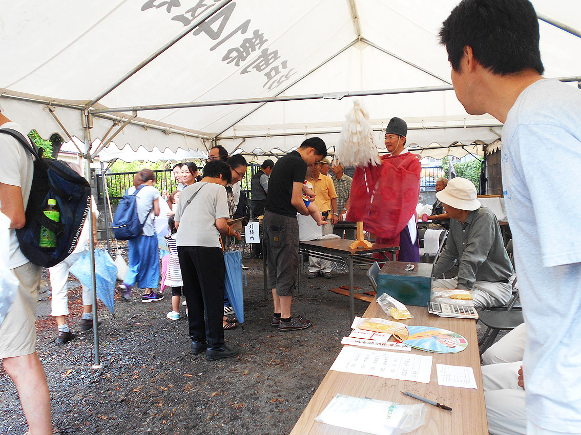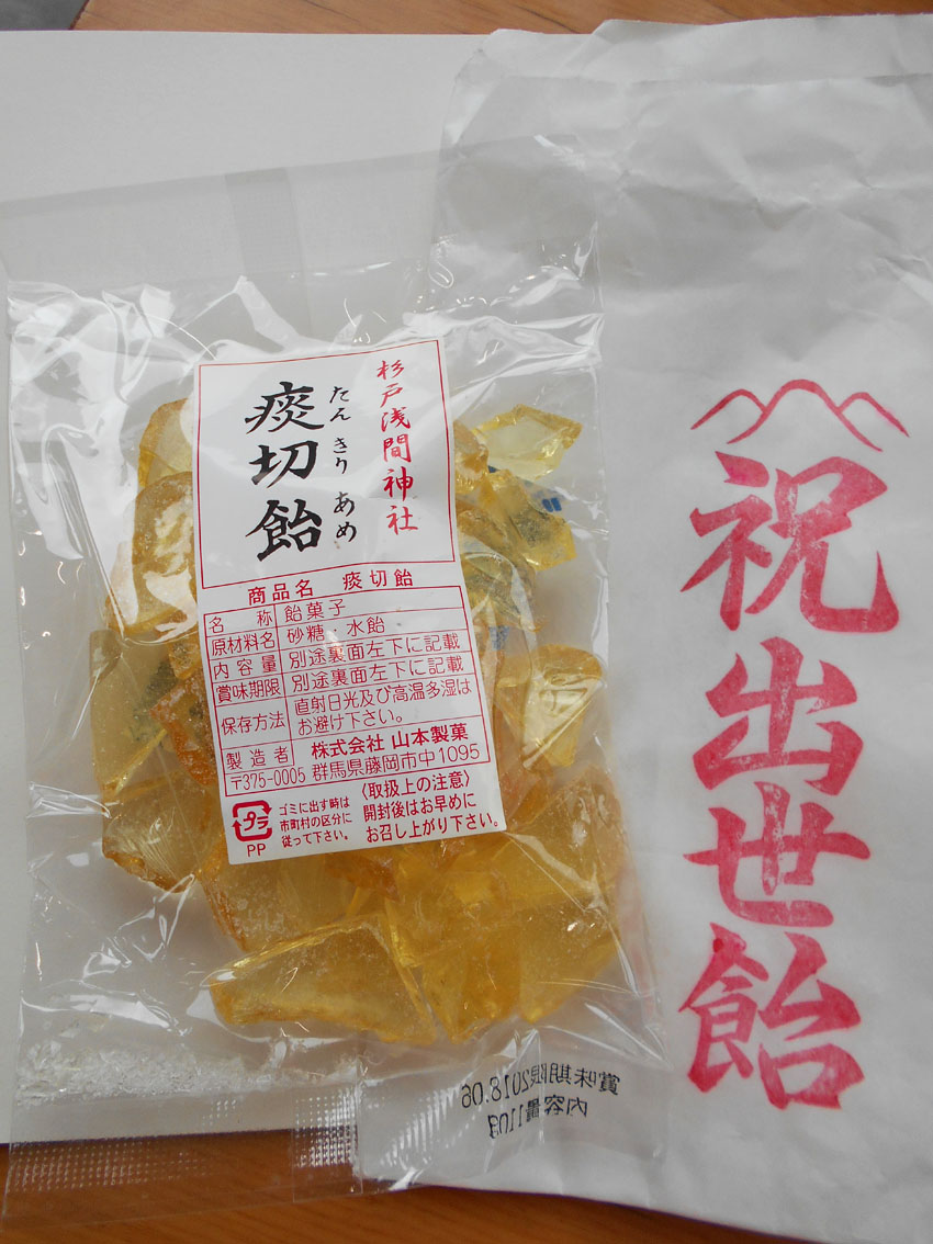 羽生はまたの機会にして、今回はいくつかまとめて行けるところを選びました。 東武動物公園」駅で下車すると、3つの富士塚に歩いて行けます。 かつて「三山(みやま)」として、(北葛飾郡)杉戸町河原の富士塚と(南埼玉郡)宮代町本田の富士塚と(南埼玉郡)宮代町山崎の富士塚(赤松浅間神社)を参るのが、このあたりの初山だったそうです。(現在はひとつでOK。そして、本田の富士塚は初山はやっていません) まずは杉戸町の富士塚です。 小さいながらも道幅に余裕があって(特に中道が広い!)安全に登拝でき、よくできた構造です。初山仕様にしたと思われますが、とても魅力的。 幟も立派! 「朝7時からやっていたんですよ」とのこと。 まずは神主さんからお祓いを受けます。 そして赤ちゃんの額に御朱印を押して。 (私はスケッチブックに押してもらいました♪) 団扇の他に痰切り飴と神様のお米、そしてお札です。 団扇は、私が子供の頃に静岡でいただいたものとは違う絵柄でしたが、レトロ路線は同じです。 この飴、ここでは「出世飴」と言われます。子を思う親心ですね。 団扇をご近所さんに配る分をどっさり買い求めることが多いので、氏子総代の方達は大量注文が入るとおおわらわ。団扇の裏に赤ちゃんの名前を書きます。 Facebook あり〼