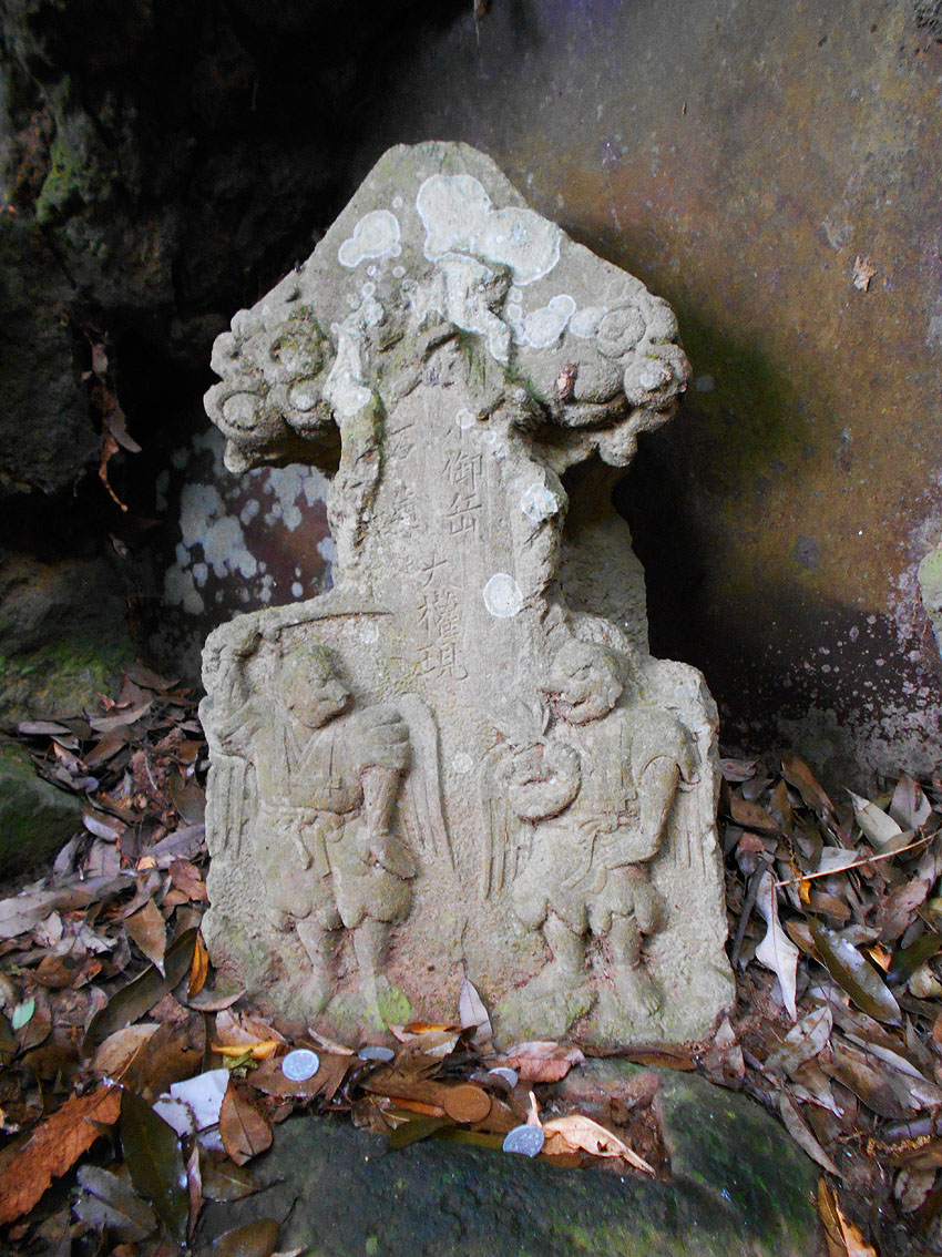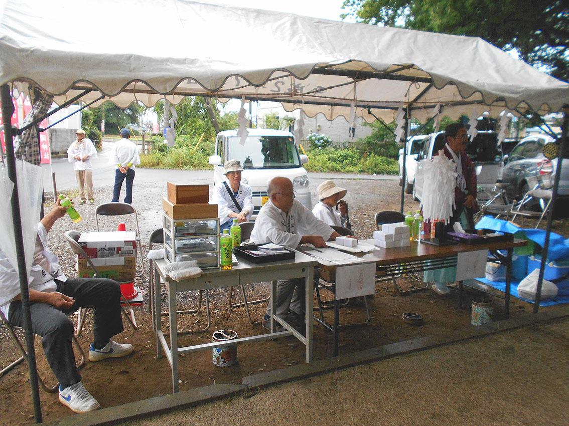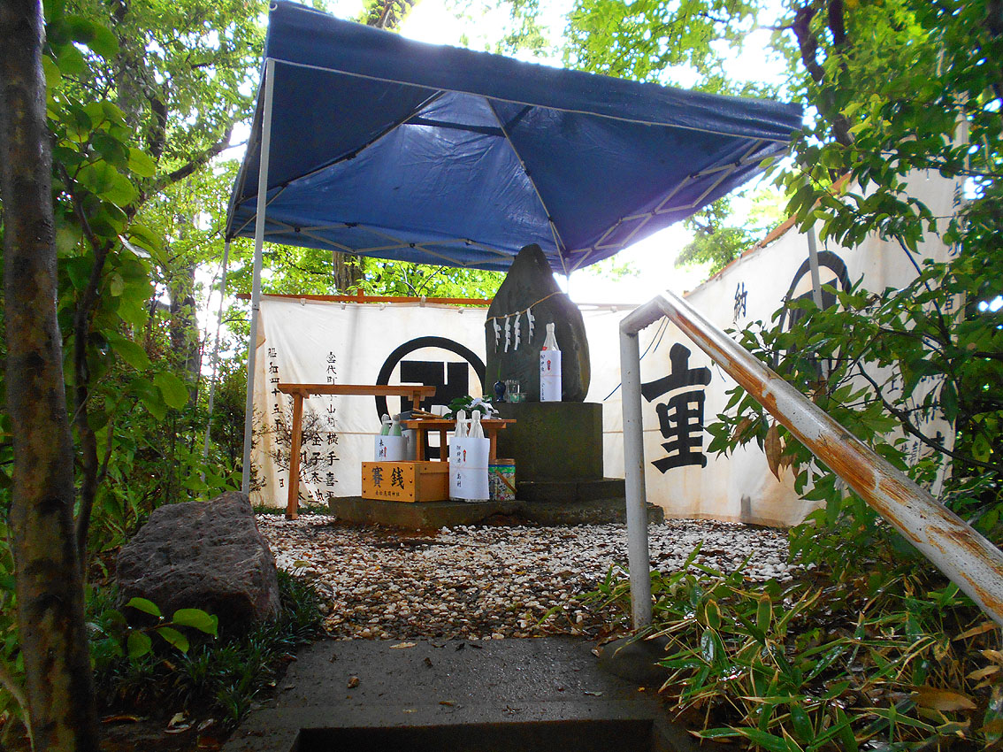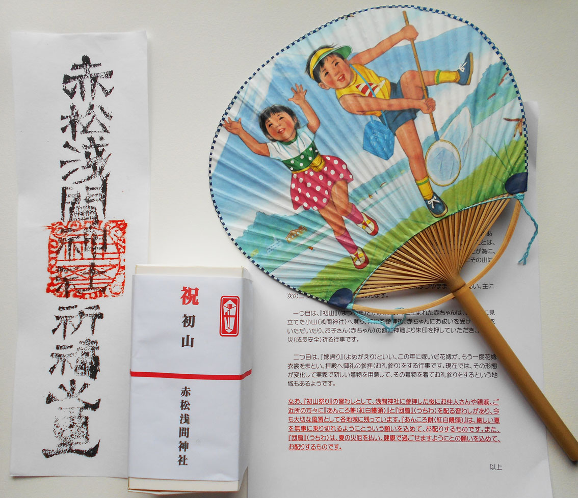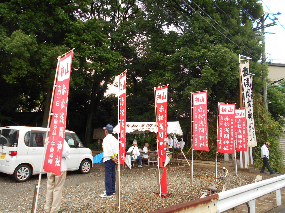 東武動物公園のそばを歩き、しばらく行くと赤松浅間神社と呼ばれる富士塚がポツンとあります。 赤い旗が迎えてくれます。ささやかながらも初山参りは健在。 テントの中では、氏子衆が宮司さんと一緒に初山参りの家族を待ちます。 ぽつりぽつりと家族が訪れて、赤ちゃんの額にハンコが押されます。 富士塚は登りやすいです。 頂上の奥宮。 ここで驚きなのは、小御嶽の石碑です! 経年により摩滅していますが、立体牛王のような彫刻で、富士山や大天狗小天狗がすばらしい。 かつてここには池があり、それを埋め立てたのだと氏子の方達が話してくれました。 赤松浅間でいただいた「初山セット」です。味のあるお札、レトロな団扇、それに紅白饅頭。お饅頭のおいしいこと! Facebook あり〼