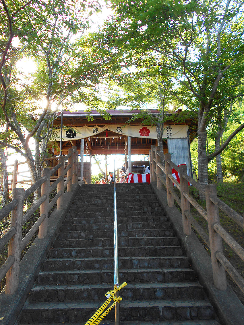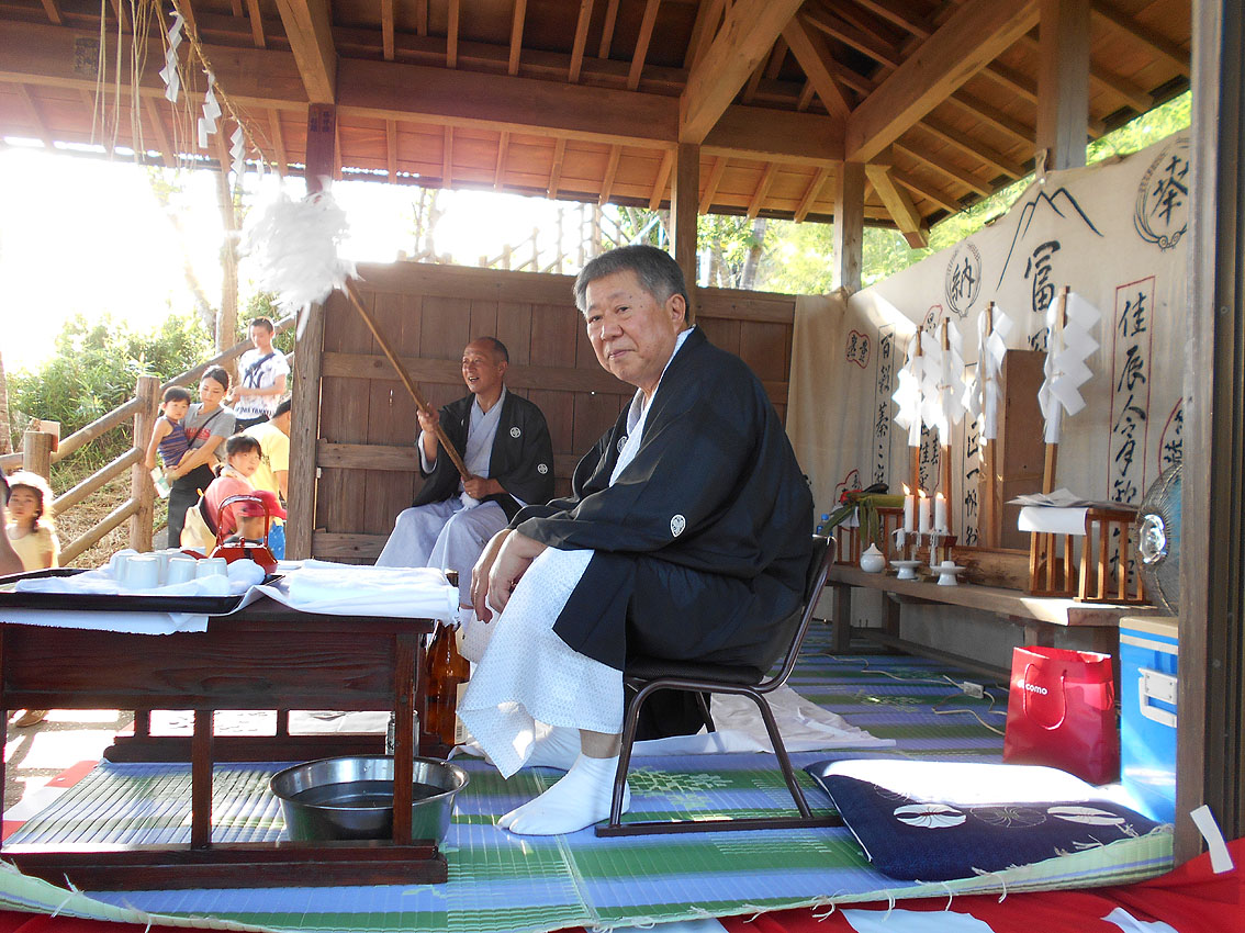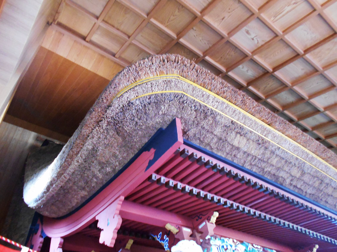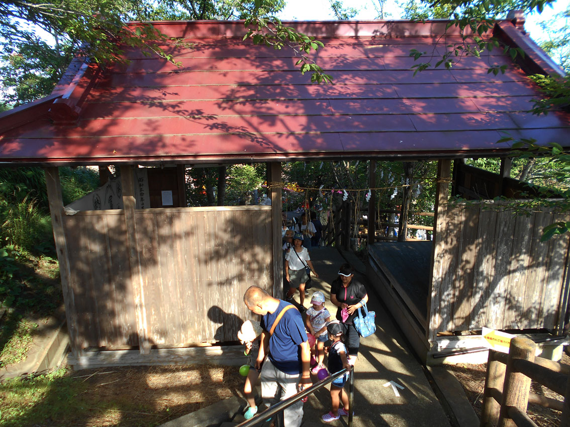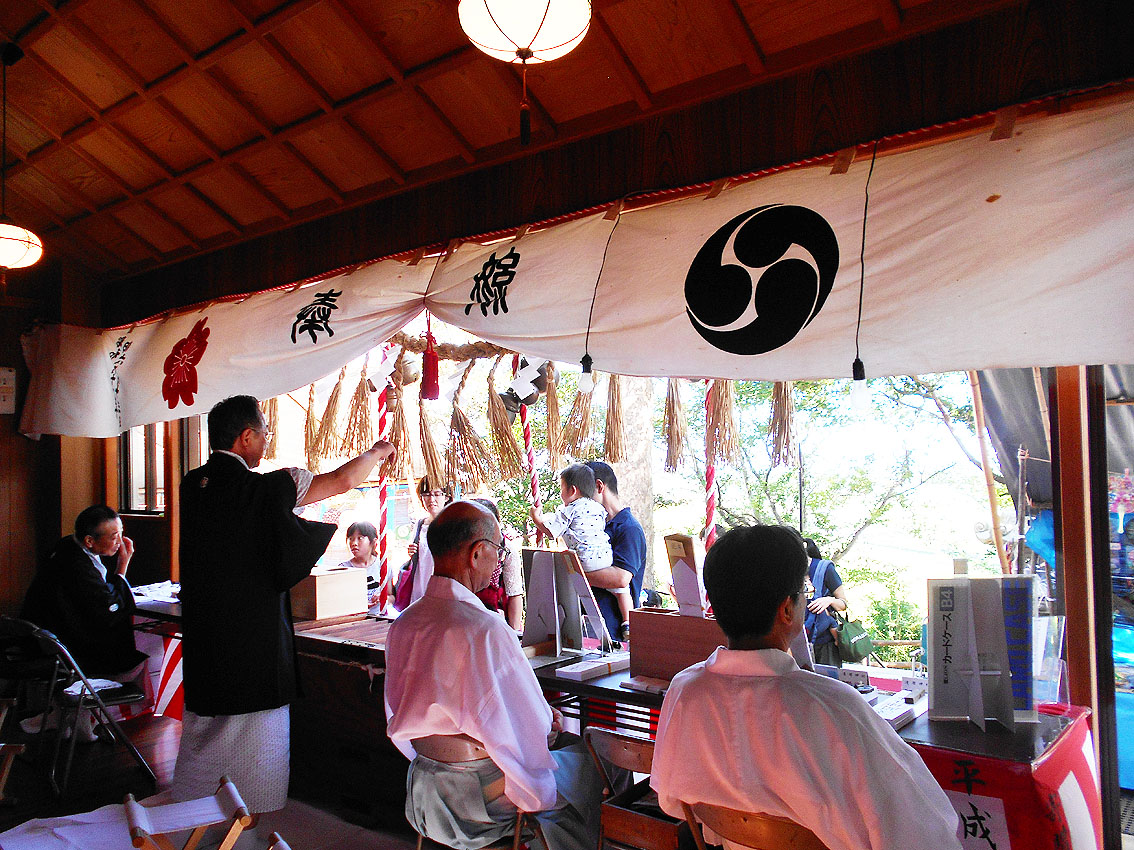 千葉県の九十九里にも初山があります。 総武本線の松尾(成東のひとつ隣)が一番近いです。 車窓からの景色は、延々と田園が続きますが、遠くに低山が見えてくるので、浅間神社である富士塚は、数十メートル規模の自然地形の山だと想像できます。 駅前の商店も最高です!(ちゃんと開店してます) 駅を離れるとすぐに田園です。 ガマの穂を見つけたり、「さんむ田んぼアート」に遭遇しながら歩くこと20分。 とにかく人がいません。。。 誰にも出会わず「祭りは今日じゃなかったのかな」と不安になる頃、 「通行止め」のサインが目に入ります。 低山を右手にしばらく歩いて行くと、 縁日の屋台と、遠くに幟も見えてきました。 ふうっ。ここで間違いない! 幟に「冨深山」と書いてあるのが読めますか? 冨深山でふじさんと読みます。富士山をこう表記するのはおそらくこの地域でしかないでしょう。 お祭り! お祭り! 浅間様のお祭りです! ここは、田越浅間神社。 登山口では青年たちが手水をかけてくれます。これでお清めを忘れる人はいませんね。ナイスです! 登下山道の図もわかりやすく描かれていました。 登山口の左右には、左:「浅間神社」と右:「冨深山」と刻まれた石が。 登山道は登りやすいがなかなかキツい。 「お年寄りや体の弱い人はここでも拝めるように」と、途中に里宮の拝殿があります。 氏子総代の方達から御神酒をいただき、お祓いしていただき、頂上へ行く人は「行ってらっしゃい」と声をかけられます。 白い幕の中央にあるのは、富士講の紋ではなく、三峰のマークの下に「冨深山浅間宮」と書かれているのです。 では、行って参ります。 里宮を後にし、 しばし頂上を目指します。 「もうすぐ? 」「うん!」「あ、ちがうちがう、下山道から入っちゃだめだよ」 (私をはさんで親子の会話) そうそう、ここが頂上の奥宮です。 頂上は最高のビューです!海が見えています。 涼風が気持ちいいですが、初山なので「団扇」です! ここは千葉なので、日本三大団扇のひとつ「房州うちわ」です!(柄が丸い) 子供を連れた家族が本殿にお参りします。 本殿の中に入らせていただきました。 ここでは額の御朱印はありませんが、神職による大変丁寧なご祈祷を授かります。 御朱印の代わりというわけではありませんが、指で御神酒を赤ちゃんの額につけるという、興味深い動作を拝見しました。(やはり眉間はパワーが入りやすいところですよね) ここでは、お子さんが7歳になるまで毎年お参りしましょうと言われます。 そういえば、各地の初山でも「7歳児まで」と言っています。そのわけを神主さんに尋ねたら、こうおっしゃいました。 「7歳までは神様ですから」 神輿が祀られ、極彩色かつ茅葺き屋根の本殿は、かなりの迫力です。 お世話になりました! 素敵なところでした。また訪れたいと思います。 Facebook あり〼