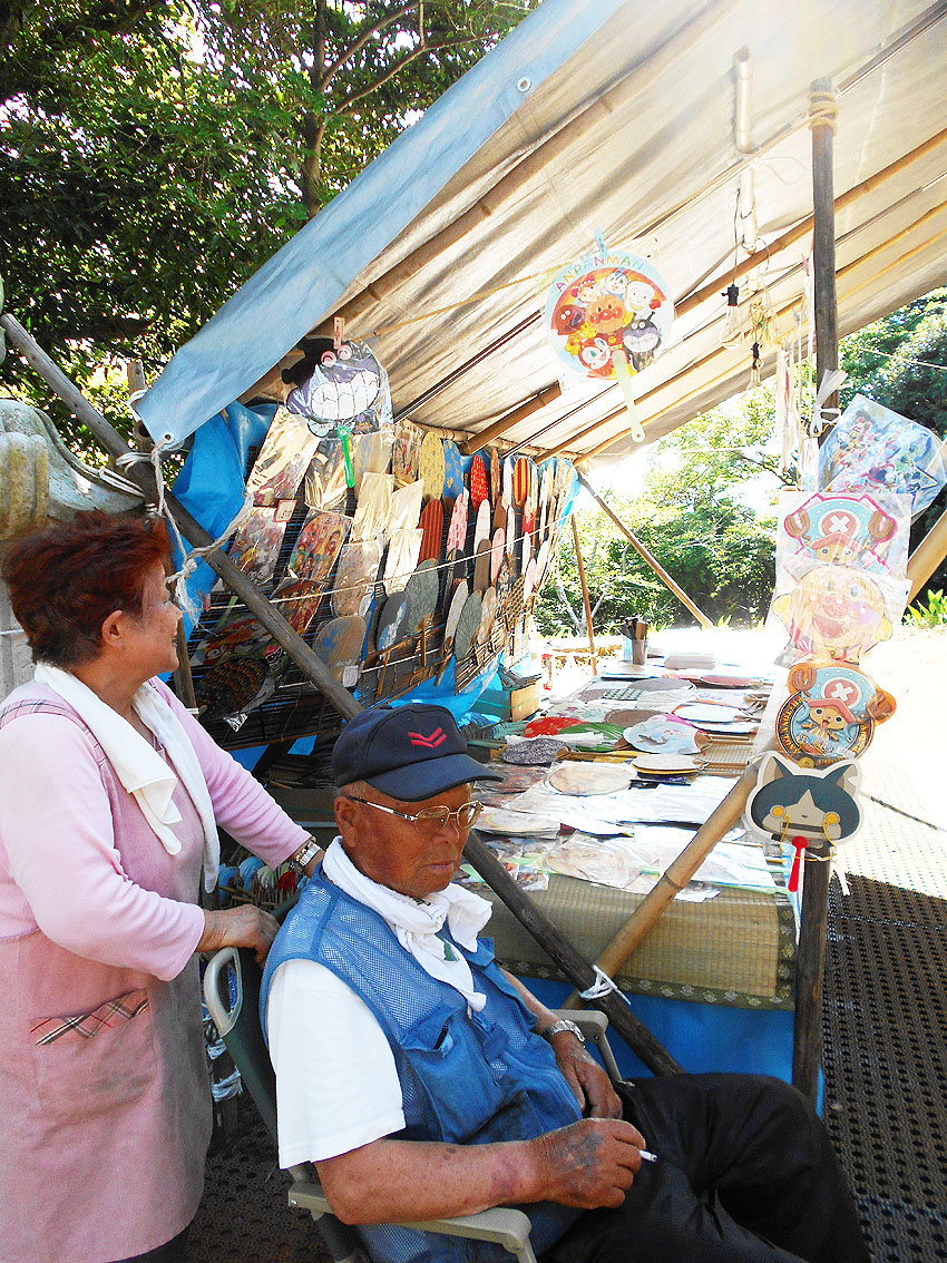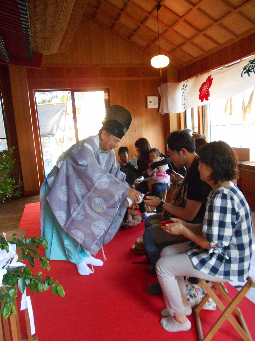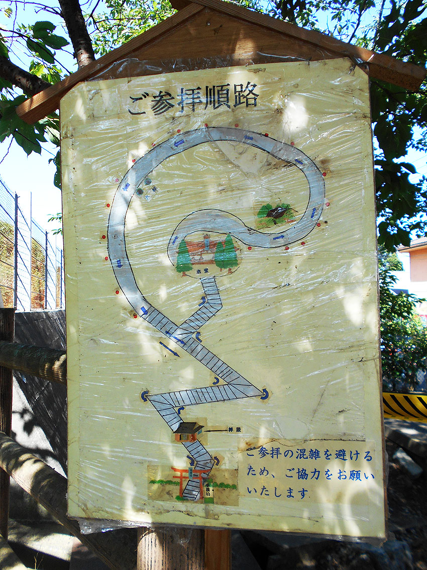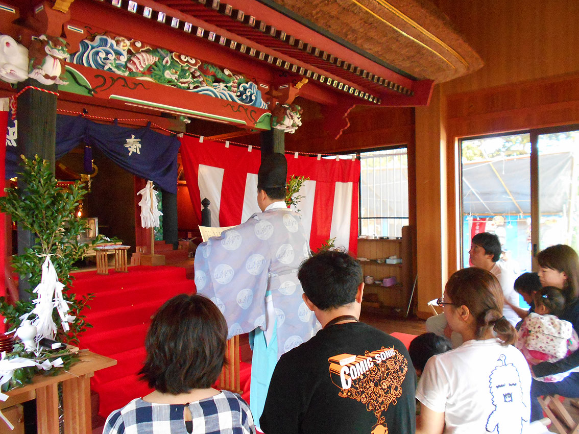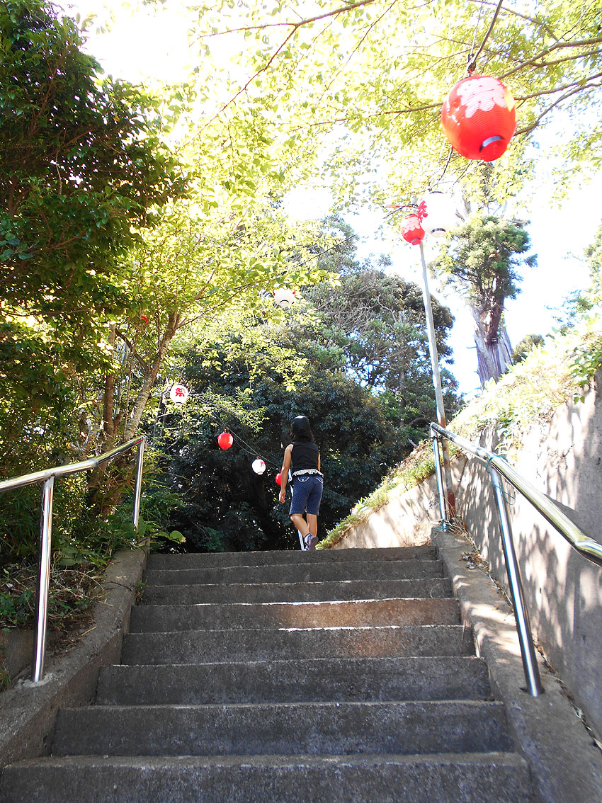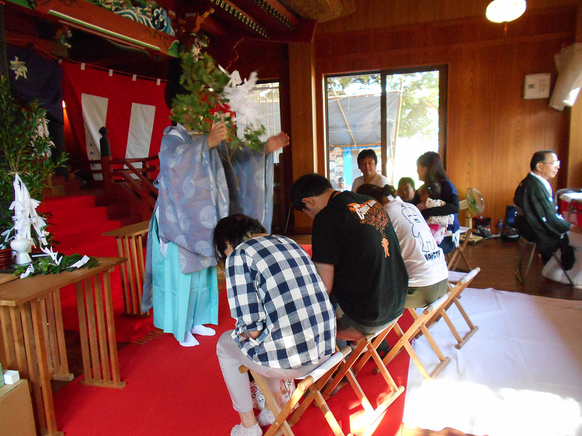千葉県の九十九里にも初山があります。 総武本線の松尾(成東のひとつ隣)が一番近いです。 車窓からの景色は、延々と田園が続きますが、遠くに低山が見えてくるので、浅間神社である富士塚は、数十メートル規模の自然地形の山だと想像できます。 駅前の商店も最高です!(ちゃんと開店してます) 駅を離れるとすぐに田園です。 ガマの穂を見つけたり、「さんむ田んぼアート」に遭遇しながら歩くこと20分。 とにかく人がいません。。。 誰にも出会わず「祭りは今日じゃなかったのかな」と不安になる頃、 「通行止め」のサインが目に入ります。 低山を右手にしばらく歩いて行くと、 縁日の屋台と、遠くに幟も見えてきました。 ふうっ。ここで間違いない! 幟に「冨深山」と書いてあるのが読めますか? 冨深山でふじさんと読みます。富士山をこう表記するのはおそらくこの地域でしかないでしょう。 お祭り! お祭り! 浅間様のお祭りです! ここは、田越浅間神社。 登山口では青年たちが手水をかけてくれます。これでお清めを忘れる人はいませんね。ナイスです! 登下山道の図もわかりやすく描かれていました。 登山口の左右には、左:「浅間神社」と右:「冨深山」と刻まれた石が。 登山道は登りやすいがなかなかキツい。 「お年寄りや体の弱い人はここでも拝めるように」と、途中に里宮の拝殿があります。 氏子総代の方達から御神酒をいただき、お祓いしていただき、頂上へ行く人は「行ってらっしゃい」と声をかけられます。 白い幕の中央にあるのは、富士講の紋ではなく、三峰のマークの下に「冨深山浅間宮」と書かれているのです。 では、行って参ります。 里宮を後にし、 しばし頂上を目指します。 「もうすぐ? 」「うん!」「あ、ちがうちがう、下山道から入っちゃだめだよ」 (私をはさんで親子の会話) そうそう、ここが頂上の奥宮です。 頂上は最高のビューです!海が見えています。 涼風が気持ちいいですが、初山なので「団扇」です! ここは千葉なので、日本三大団扇のひとつ「房州うちわ」です!(柄が丸い) 子供を連れた家族が本殿にお参りします。 本殿の中に入らせていただきました。 ここでは額の御朱印はありませんが、神職による大変丁寧なご祈祷を授かります。 御朱印の代わりというわけではありませんが、指で御神酒を赤ちゃんの額につけるという、興味深い動作を拝見しました。(やはり眉間はパワーが入りやすいところですよね) ここでは、お子さんが7歳になるまで毎年お参りしましょうと言われます。 そういえば、各地の初山でも「7歳児まで」と言っています。そのわけを神主さんに尋ねたら、こうおっしゃいました。 「7歳までは神様ですから」 神輿が祀られ、極彩色かつ茅葺き屋根の本殿は、かなりの迫力です。 お世話になりました! 素敵なところでした。また訪れたいと思います。 Facebook あり〼