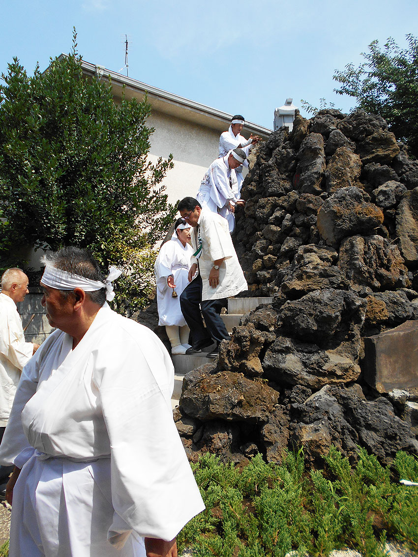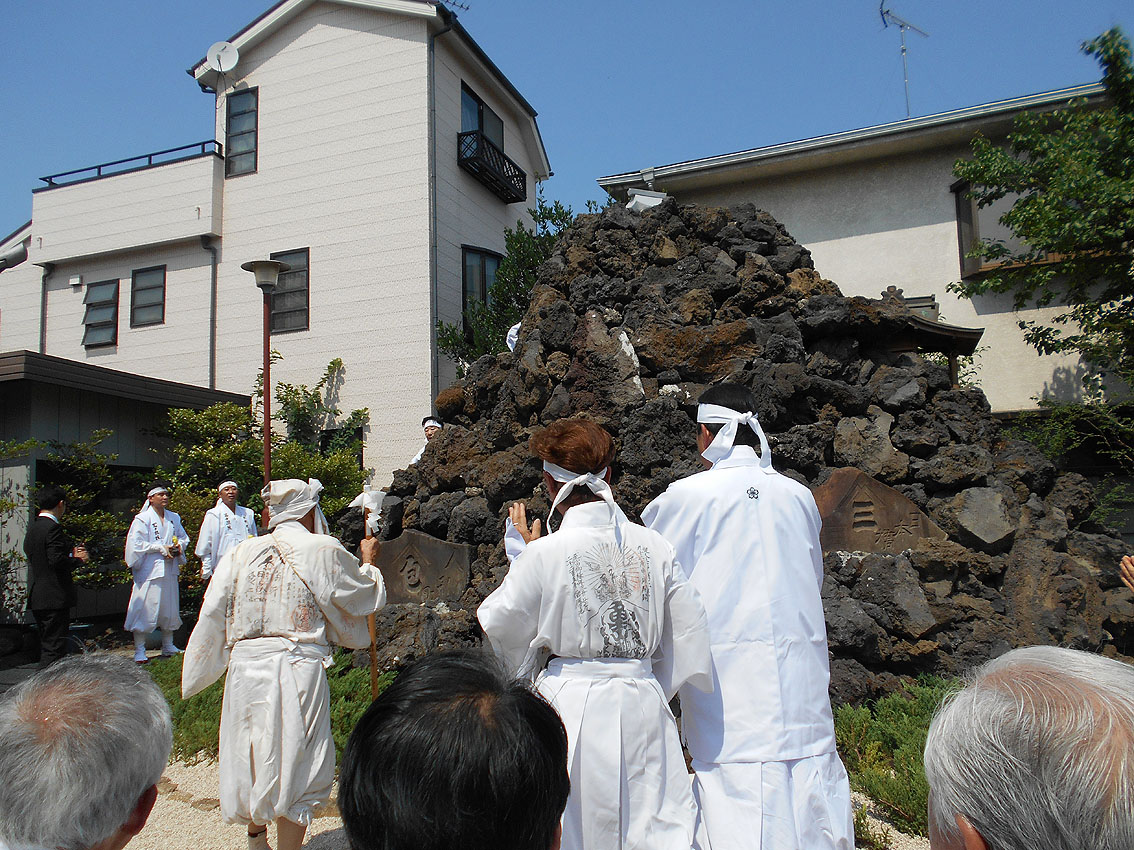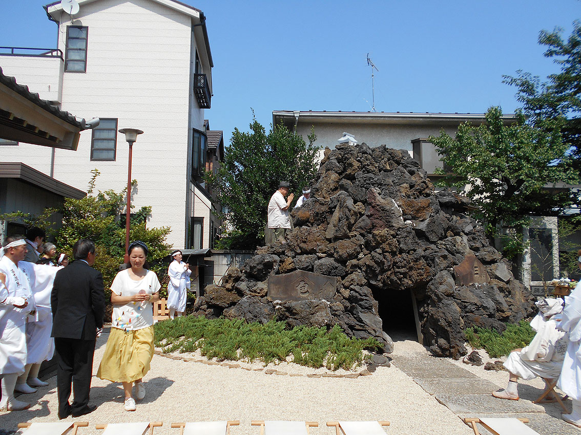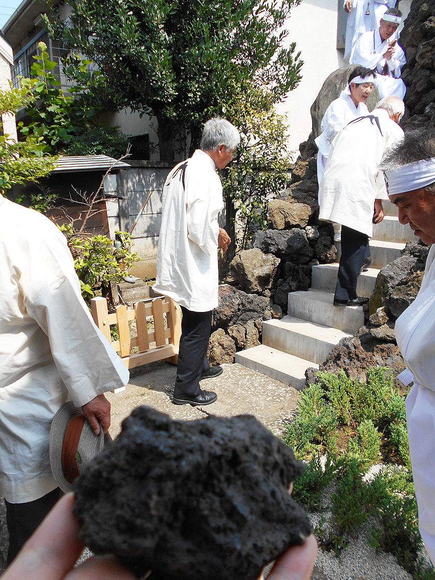 「勝手にニュース2017」第1位は、「シン・松原富士」と決まりました! 1393【 東京の富士塚がひとつ増えます!】の記事でも予告しましたが、扶桑教(世田谷区松原)境内に松原富士が70年ぶりに再築され、竣工式は7月9日でした。 浅草富士や鉄砲洲富士や飯塚富士など近年再築される富士塚は多いですが、この松原富士はちょっと違う。 私が嬉しかったのは、アーティスティックな仕上りだったことです。 胎内に入ると、素晴らしい空間に包まれます。 そしてそして、頭上からは真紅の光が注がれます。 胎内は富士山麓にできた洞窟なので富士塚の胎内も通常小さいですが、この富士塚は大人が何人も入って立つことができます。なぜなら山頂まで到達しているからです。 非常にユニークでアーティスティック! このシン・松原富士に関わった建築家やクリエイターと一緒に、私の知人のキュレーター(現代アート)も交えて胎内空間を味わいました。個人的には、「やられた」感があるほど感動しました。私もモダン富士塚を創るなら、このくらいの大胆さがいいと思っていたからです。(メタル富士のように) もちろん、アーティスティックとはいえ、これはアート作品ではありません。むしろ、信仰物であるからこそアートにとどまらない大きなスケールとなったのです。それは、その場にいた全員が同じように感じたことでした。 さて、このシン・松原富士は、山頂に立つことはできませんが、そこには奥宮があり、胎内に光を落とす琉球ガラスの天窓が設置されています。(可動式) 奥宮の祠も両側からオープン可。扉越しに空を取り込むなんて、なんというアイディアでしょう。 ちなみにラフコンテはこんなでした。 竣工式の儀式は炎天下、とどこおりなく催されました。 このシン・松原富士は、セメントは一滴も使われていません。組み石だけで造られています。 そして儀式の最後に、ひとりずつ、 その後、 アートがらみの方たちの感想を聞きたくて、来ていただきました。皆、このユニークな富士塚を評価していたようでした。 私も次の作品を早く形にしたいです! おまけ。 このすばらしい富士塚に感謝の気持ちを捧げ、2017年を送りたいと思います。 2018年もいい年でありますように! Facebook あり〼