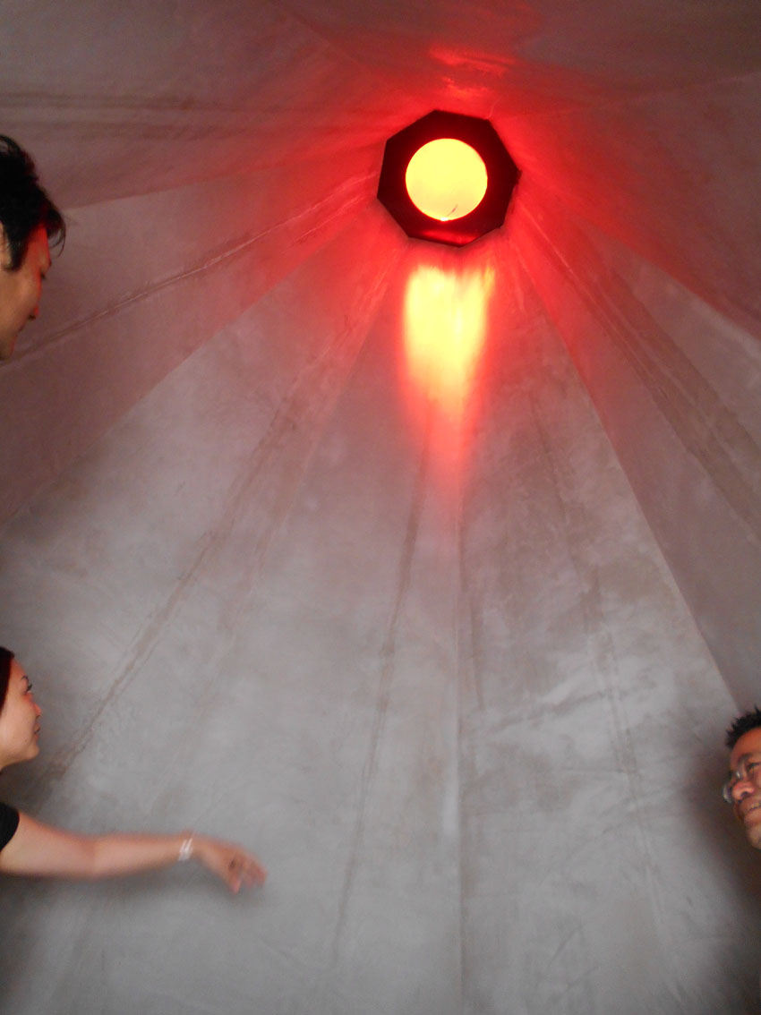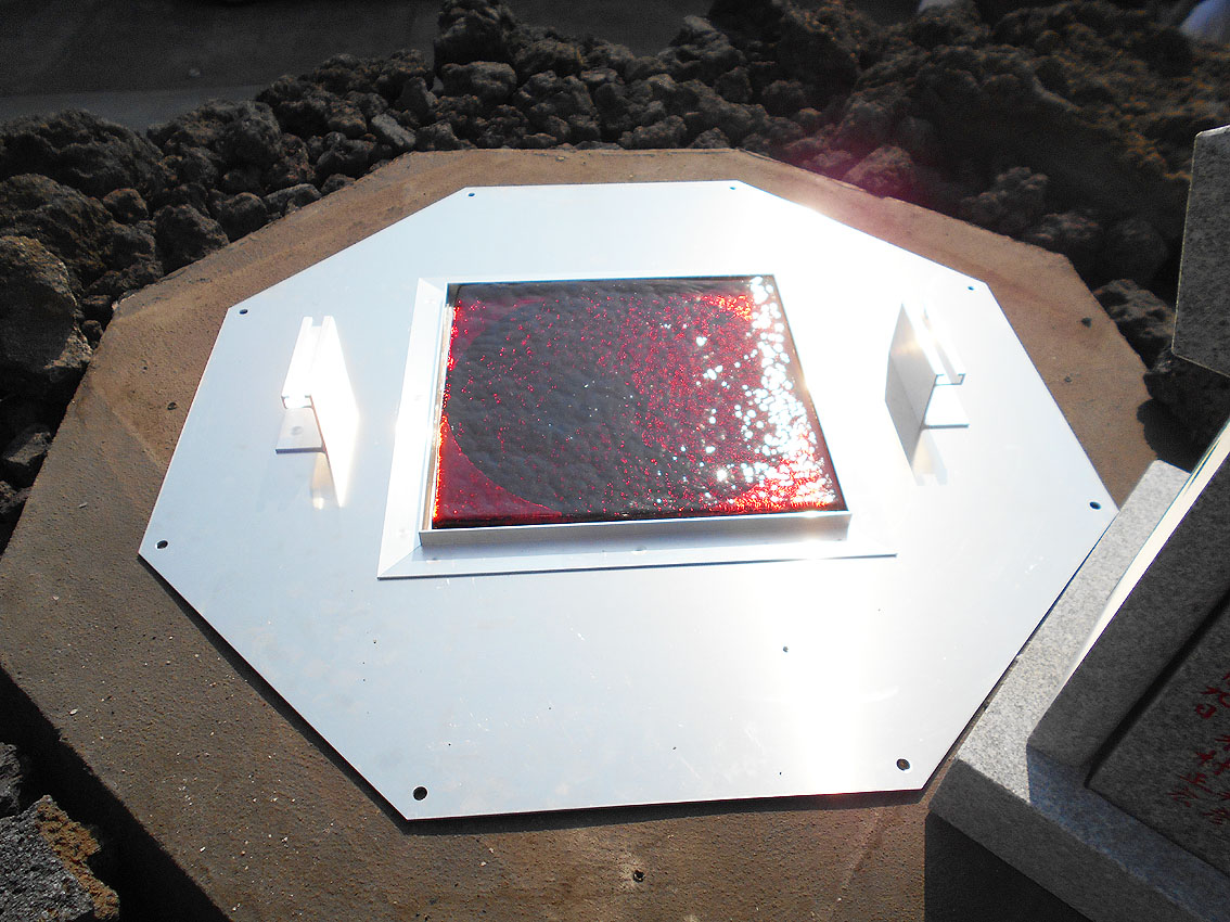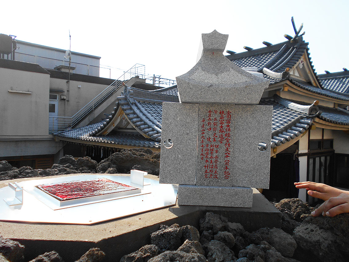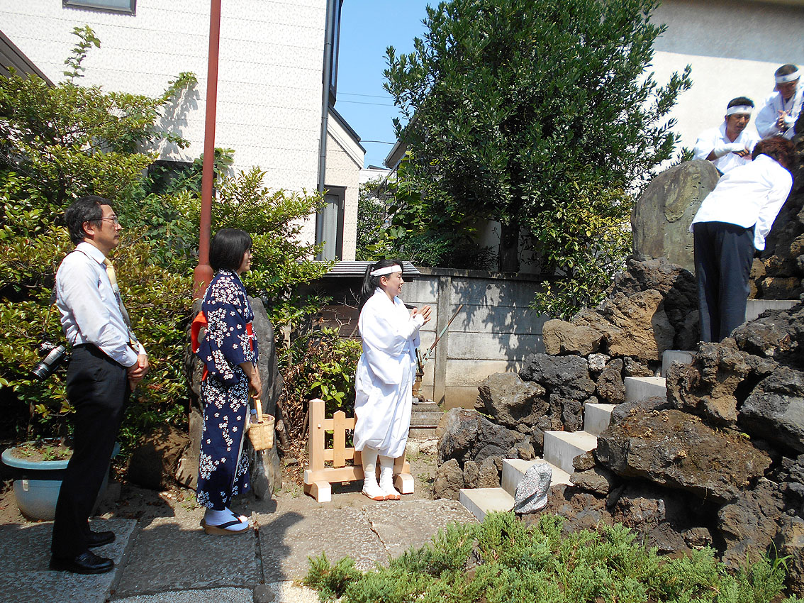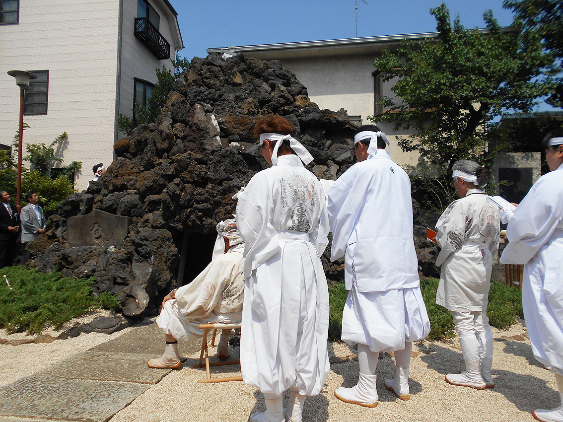 「勝手にニュース2017」第1位は、「シン・松原富士」と決まりました! 1393【 東京の富士塚がひとつ増えます!】の記事でも予告しましたが、扶桑教(世田谷区松原)境内に松原富士が70年ぶりに再築され、竣工式は7月9日でした。 浅草富士や鉄砲洲富士や飯塚富士など近年再築される富士塚は多いですが、この松原富士はちょっと違う。 私が嬉しかったのは、アーティスティックな仕上りだったことです。 胎内に入ると、素晴らしい空間に包まれます。 そしてそして、頭上からは真紅の光が注がれます。 胎内は富士山麓にできた洞窟なので富士塚の胎内も通常小さいですが、この富士塚は大人が何人も入って立つことができます。なぜなら山頂まで到達しているからです。 非常にユニークでアーティスティック! このシン・松原富士に関わった建築家やクリエイターと一緒に、私の知人のキュレーター(現代アート)も交えて胎内空間を味わいました。個人的には、「やられた」感があるほど感動しました。私もモダン富士塚を創るなら、このくらいの大胆さがいいと思っていたからです。(メタル富士のように) もちろん、アーティスティックとはいえ、これはアート作品ではありません。むしろ、信仰物であるからこそアートにとどまらない大きなスケールとなったのです。それは、その場にいた全員が同じように感じたことでした。 さて、このシン・松原富士は、山頂に立つことはできませんが、そこには奥宮があり、胎内に光を落とす琉球ガラスの天窓が設置されています。(可動式) 奥宮の祠も両側からオープン可。扉越しに空を取り込むなんて、なんというアイディアでしょう。 ちなみにラフコンテはこんなでした。 竣工式の儀式は炎天下、とどこおりなく催されました。 このシン・松原富士は、セメントは一滴も使われていません。組み石だけで造られています。 そして儀式の最後に、ひとりずつ、 その後、 アートがらみの方たちの感想を聞きたくて、来ていただきました。皆、このユニークな富士塚を評価していたようでした。 私も次の作品を早く形にしたいです! おまけ。 このすばらしい富士塚に感謝の気持ちを捧げ、2017年を送りたいと思います。 2018年もいい年でありますように! Facebook あり〼