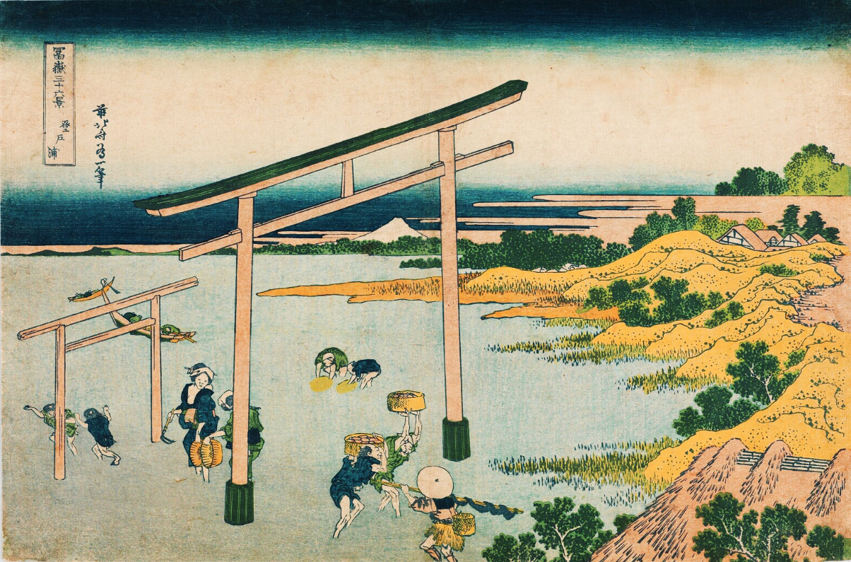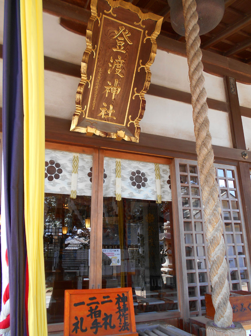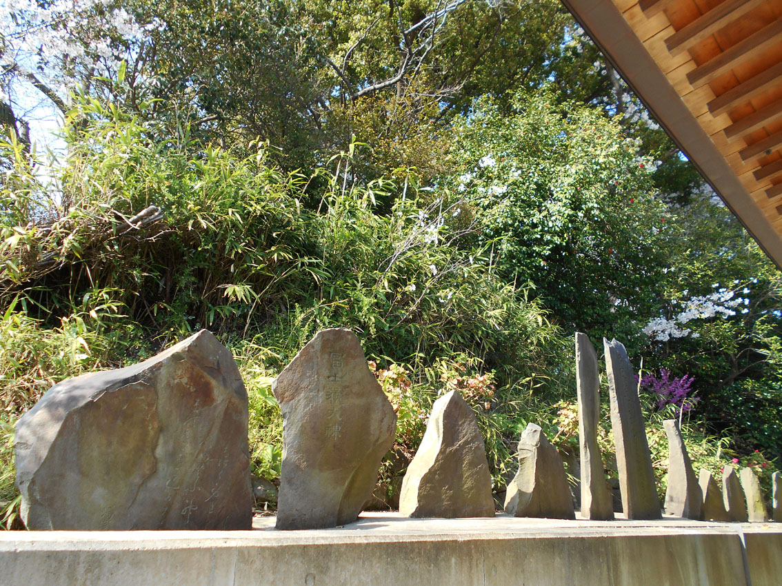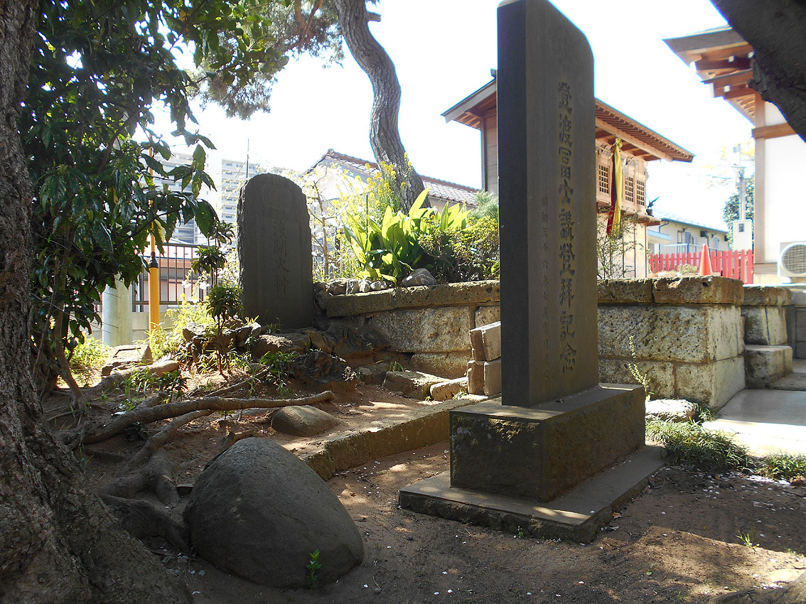 葛飾北斎が描いた冨嶽三十六景の一枚「登戸浦」。 内房の千葉湊から眺めた富士山を描いたものです。 富士山をまたぐ鳥居は、海岸沿いの「登渡神社」のもの。神社名は「とわたりじんじゃ」ですが、登戸(のぶと)という地名から、地元の人には「のぶとじんじゃ」で呼ばれています。 千葉市中央区は、埋め立てが進み、現在の海岸線は遥か沖にありますが、明治時代はまだこんなでした(白黒マップ参照)。高低差から、神社が崖の上にあるのがわかりますね。 もうひとつ、松井天山の描いた「千葉市街鳥瞰図」(昭和2年)にも、「登渡神社」が描かれています。 ということで、「登渡神社」に行く。 境内社として浅間神社はあるものの、富士塚は見当たらない。 やっと見つけた石碑2基。富士山の方角に向かって立っています。 ひとつは「浅間大神」、 もうひとつは、「登渡富士講」と刻まれていました。 でも、あると思っていた山水講の文字はなく、三峰に九曜紋(千葉氏の信仰は妙見大菩薩です)があしらわれていました。 富士塚を探しながら社殿裏の山を観察。よく見ると、社殿と裏山の境目に多数の石碑があり、「富士嶽大神」の文字が目に入りました! 富士塚に建っていたものに違いない!! 神社の方にたずねると、2年前の改修時まで裏山は開放していたとのこと。山の上から浅間神社の社を境内に降ろし、その際に、講碑をコンクリートで埋め固めたらしい。 許可をいただいて撮影しました。小御嶽神社や烏帽子岩もあります。 裏山にも入らせていただきました。石段を登りきると、遥拝を目的とするような頂きがありました。山頂に山水講の文字が刻まれた碑があるはずですが、急いでいたので撮り忘れました。残念! 「登戸富士」と呼べると思います。北斎がもう少し広範囲に描いていれば、この作品「登戸浦」にも富士塚が入っていたのです。 ちなみに、現在山水講はありませんが、「登渡神社富士登拝の会」が毎年富士登山をしています。現在の富士講(=登渡富士講)と言ってもいいでしょう。富士塚は彼らが受けついだわけですね。 ★北口本宮冨士浅間神社のサイトには、千葉市の「登渡富士講」が「現在も活動している富士講」として載っています。 Facebook あり〼
